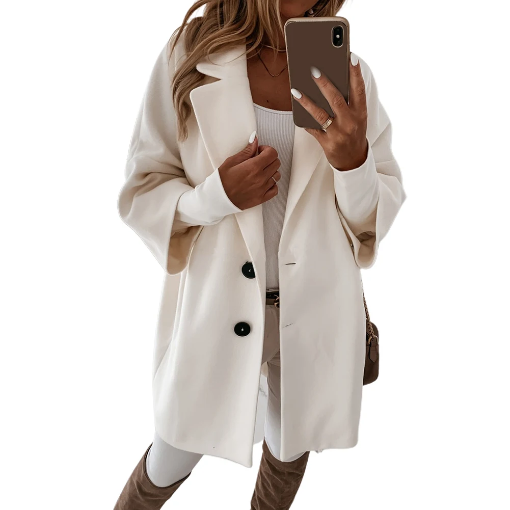 Женское повседневное длинное пальто на пуговицах, свободная куртка с рукавом 34 и карманами, теплое пальто с отложным воротником и длинным рукавом, Осень-зима