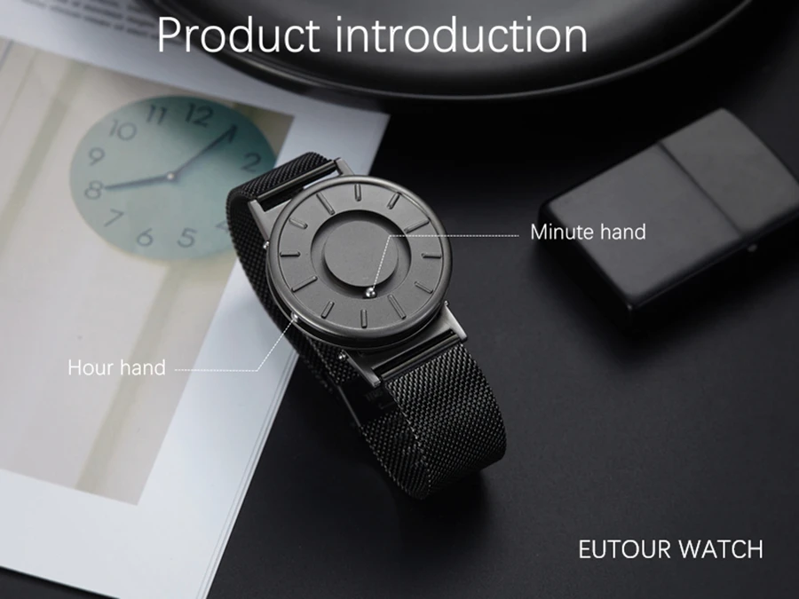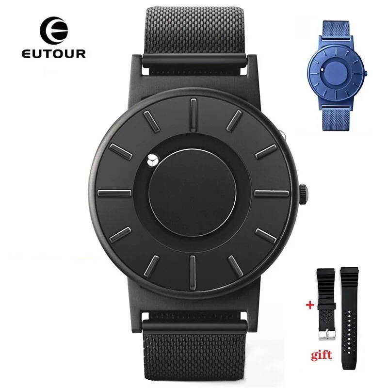 Часы EUTOUR Мужские Наручные с магнитным ремешком, спортивные Кварцевые водонепроницаемые люксовые, из нержавеющей стали