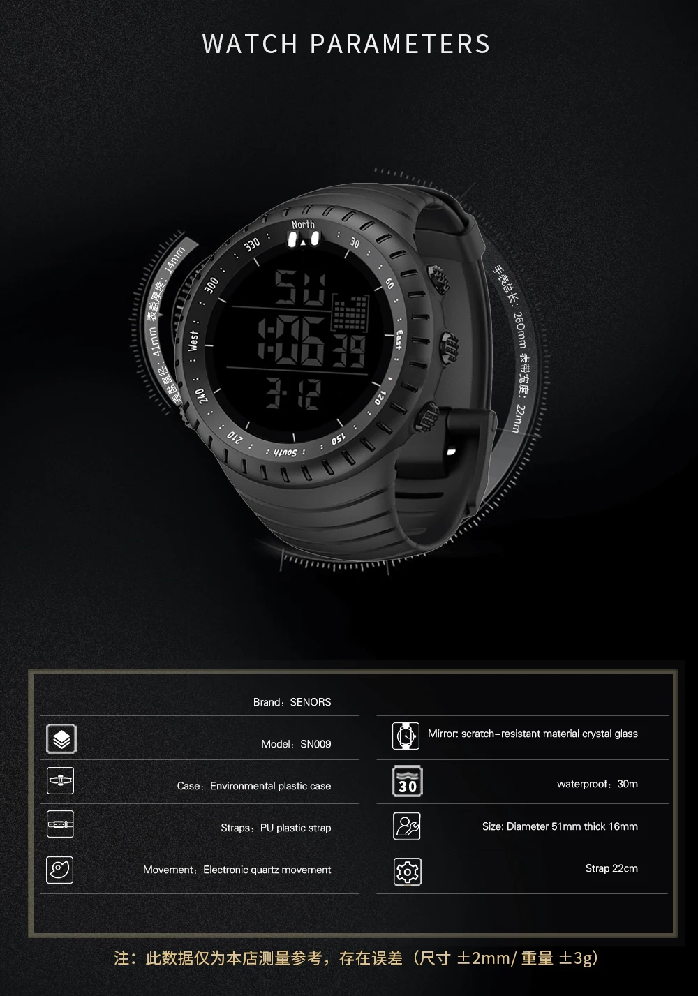 Мужские часы SENORS, водонепроницаемые военные спортивные часы, мужские Модные светодиодные цифровые электронные наручные часы