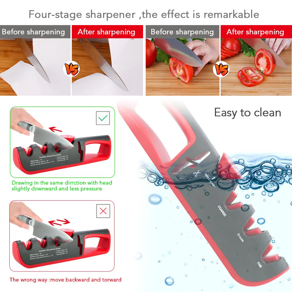 Профессиональная точилка для ножей, 4 этапа, ножницы для заточки камня, кухонная шлифовальная машина, ножи, точильный камень, угловая Регулируемая точилка, инструмент