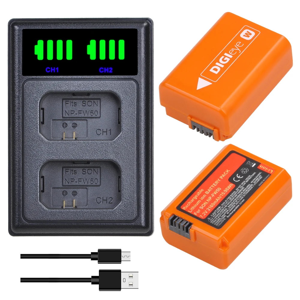 Аккумулятор 2160 мА ч NP-FW50 NP FW50 NPFW50 для Sony ZV-E10 Alpha a7 a7II a7R a7RII Alpha a6000 a6300 a6400 со светодиодной подсветкой и двойным зарядным устройством