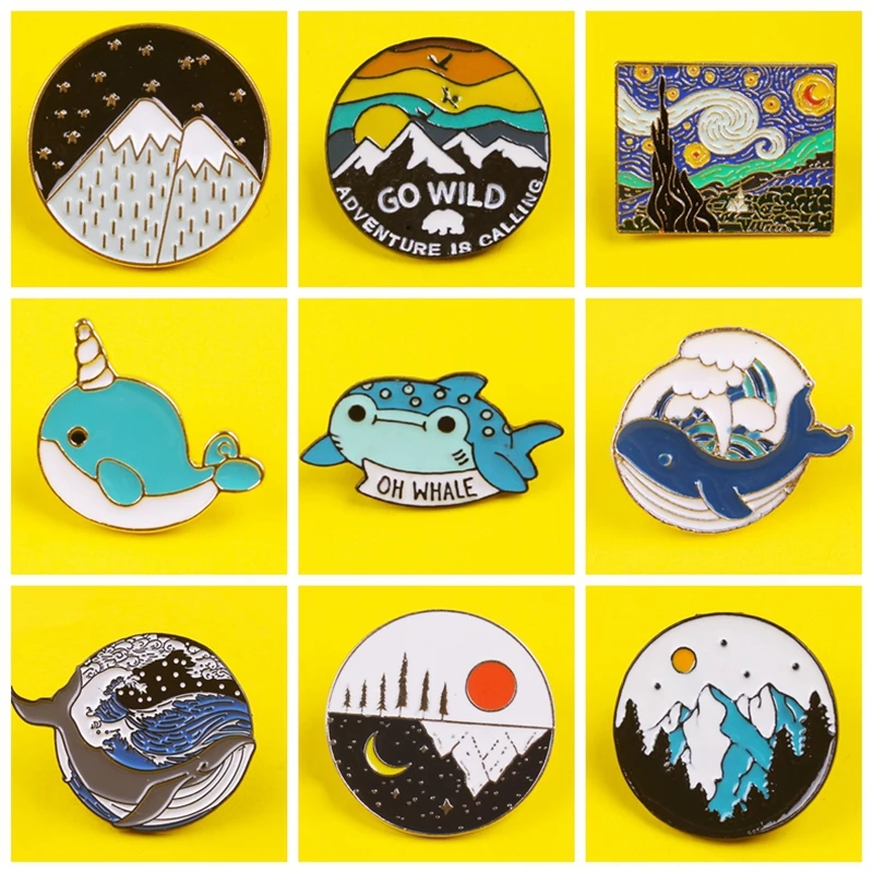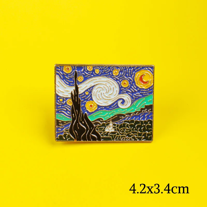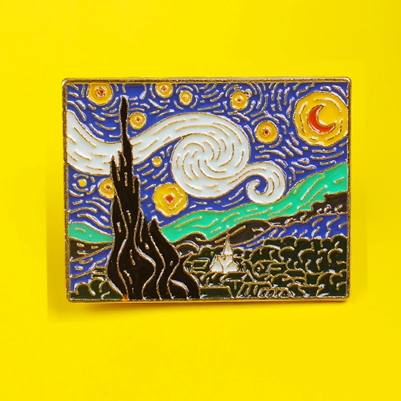 Картина маслом Ван Гога эмалированная булавка Красивая Ночная брошь значок джинсовая одежда рюкзак Абстрактные Художественные нашивки на рюкзаке