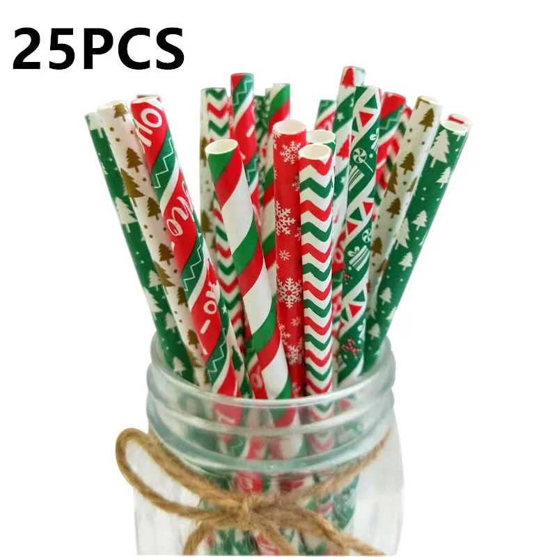 Рождественские бумажные соломинки, аксессуары для вечерние, однораз...