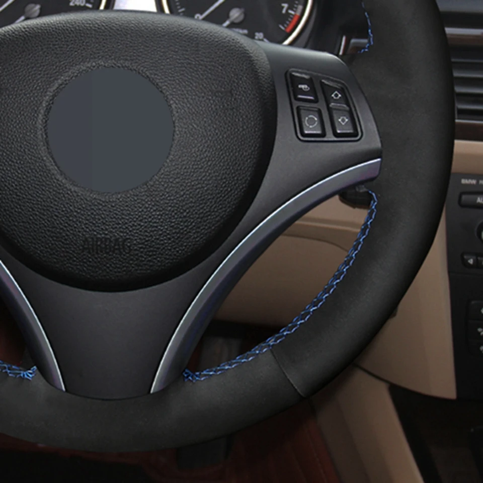 Черная замша ручной работы для BMW E90 (седан) E91 (универсал) E92 E93 X1 E84 E87 E81 E82 E88, чехол рулевого колеса автомобиля