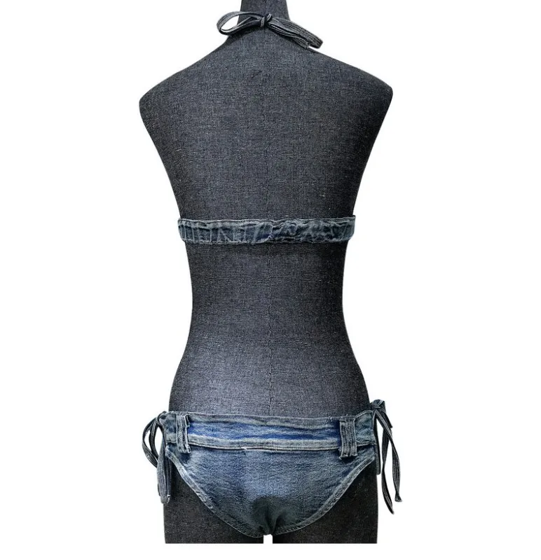 Комплект бикини женский из денима, пикантный бюстгальтер и трусы, купальный костюм, пляжная одежда