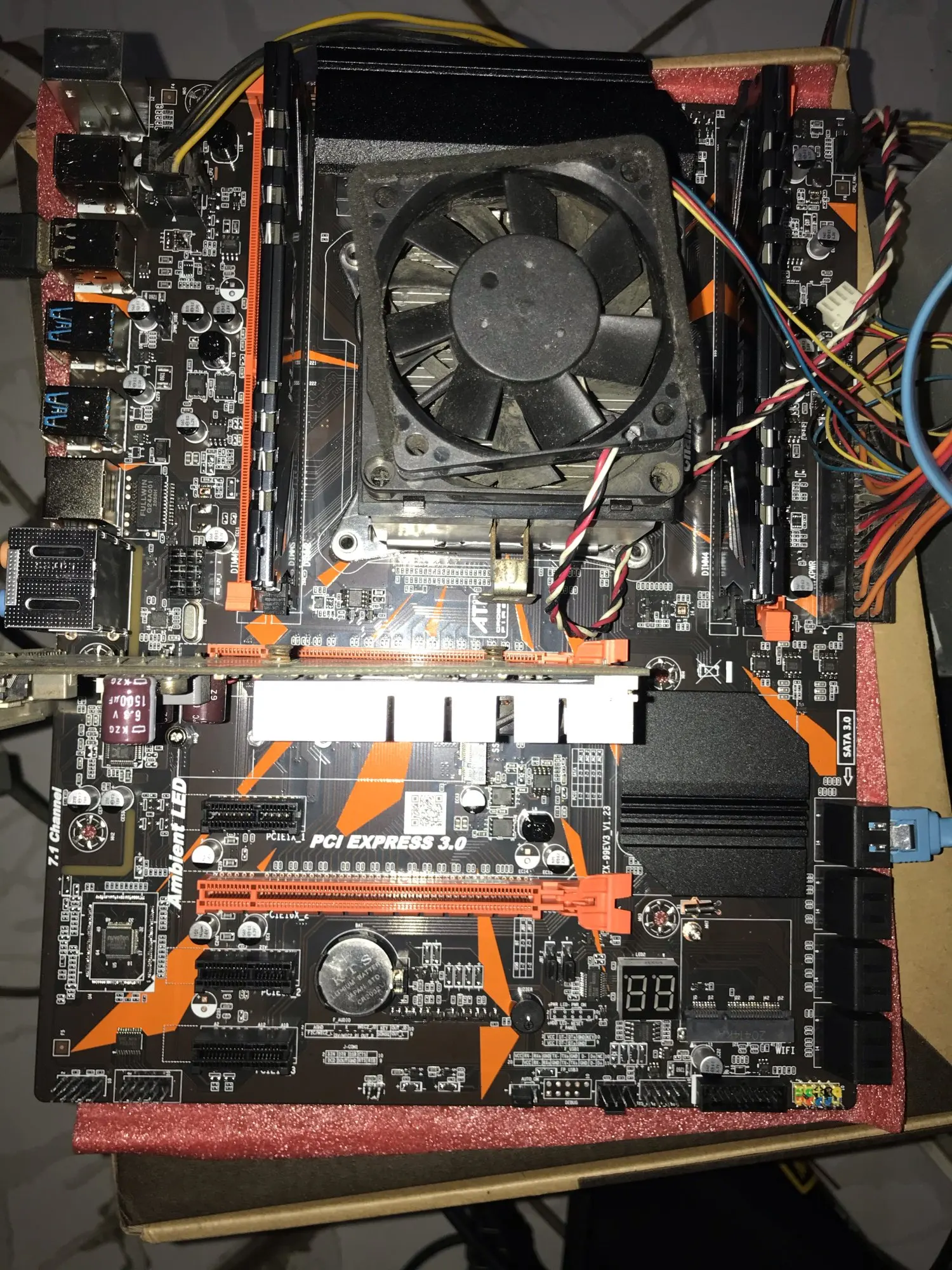 Плата пришла быстро, на первый взгляд всё хорошо. В описании на фото более поздняя ревизия, а прислали 1.21, что не есть хорошо, неудобное расположение питания процессора, под кулер только один разъем, индикатор перевёрнут. Проверить удалось только через месяц после получения посылки, т.к. заказал ещё кулер у этого продавца, но он его отправил отдельно и по всей видимости через северный морской путь. При запуске пищит три раза, но запускается. В общем вроде работает.