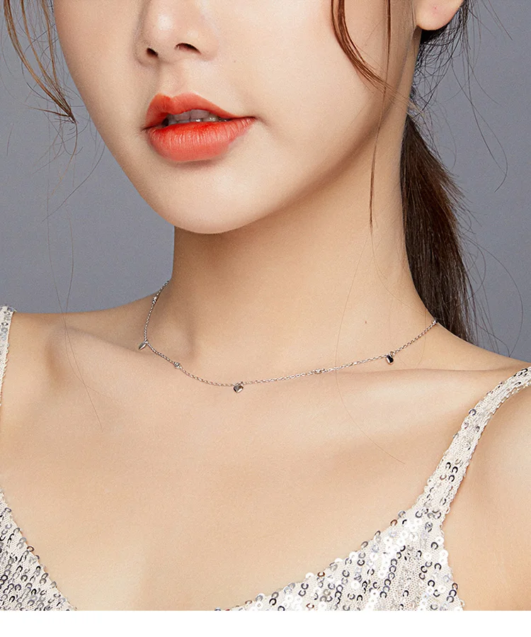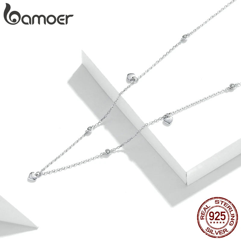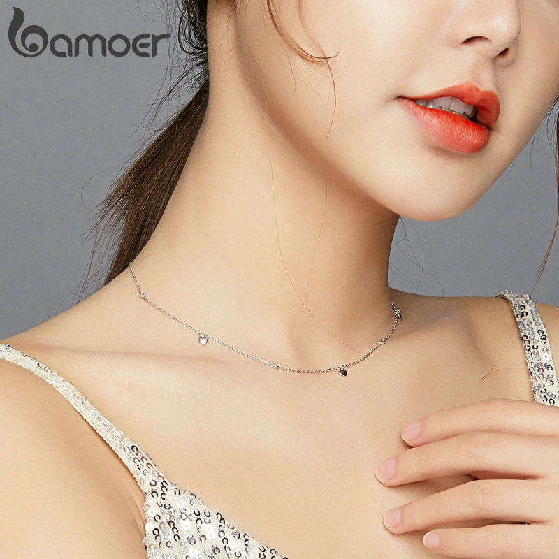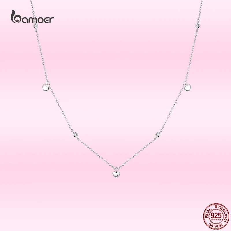 Женское ожерелье с подвеской Bamoer, ожерелье из стерлингового серебра 925 пробы, покрытое платиной CZ, простое ожерелье в форме сердца, ювелирные изделия GXN417