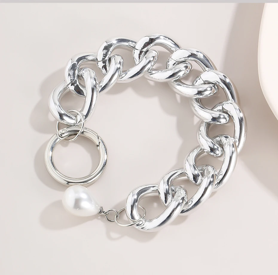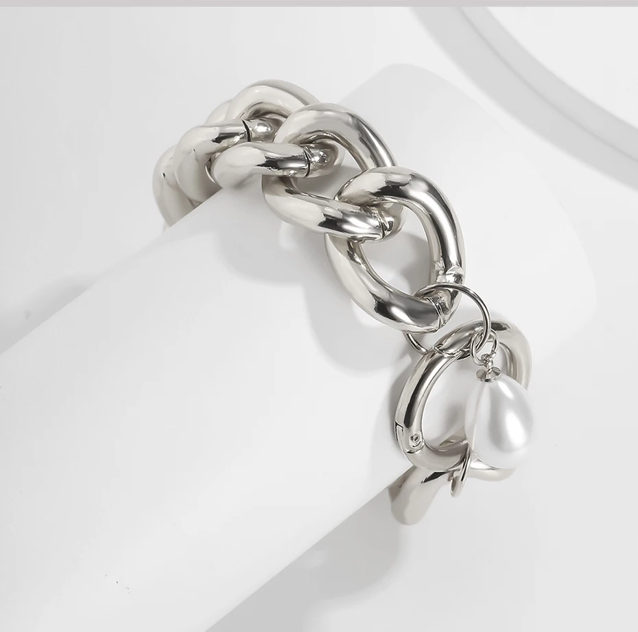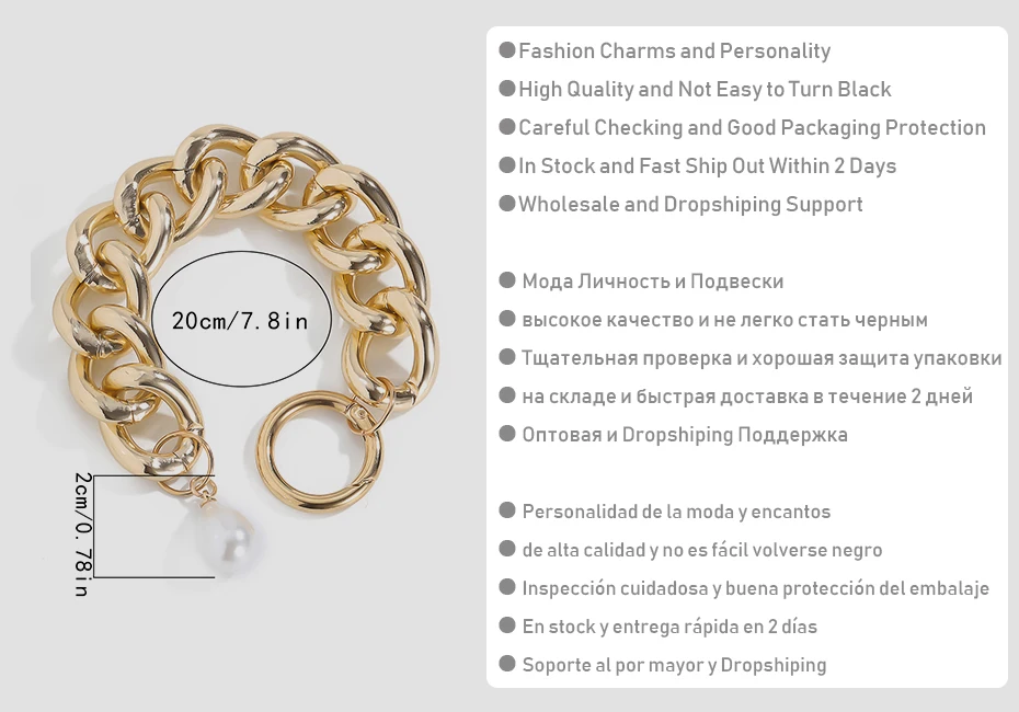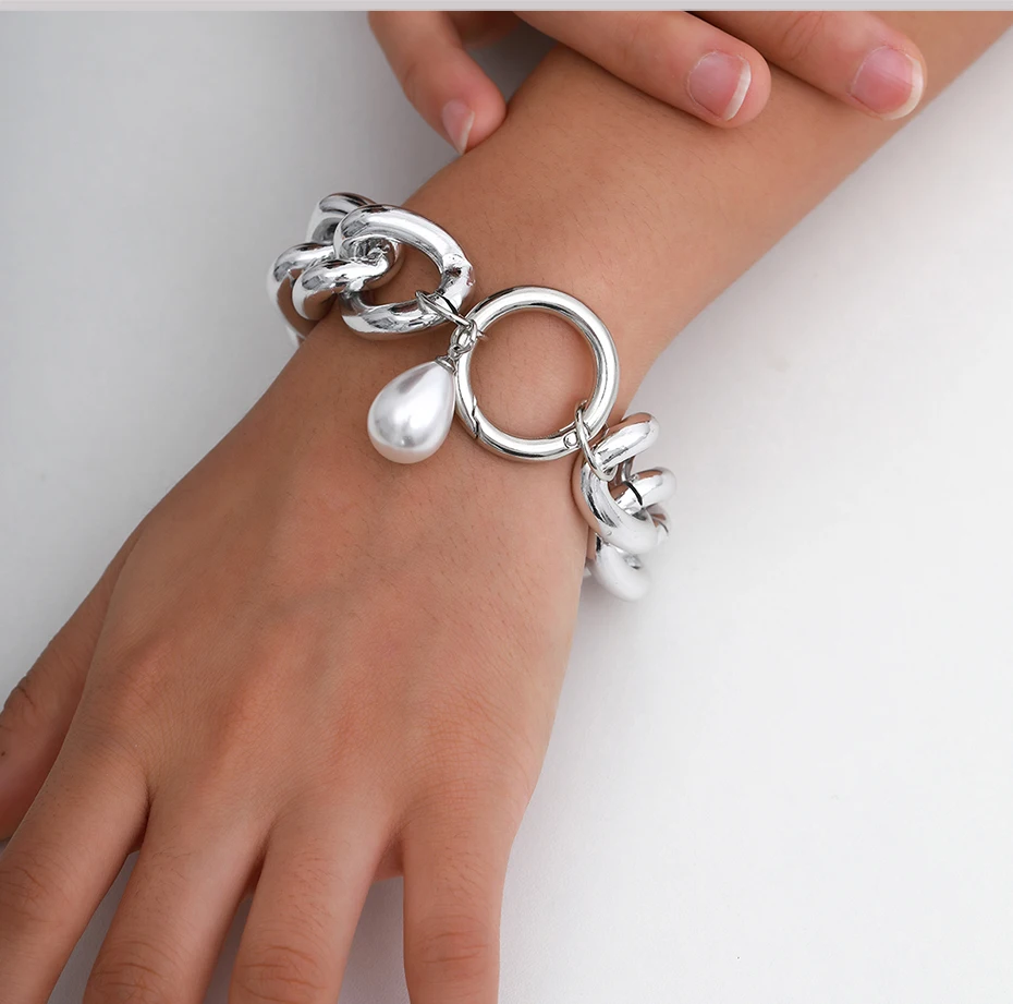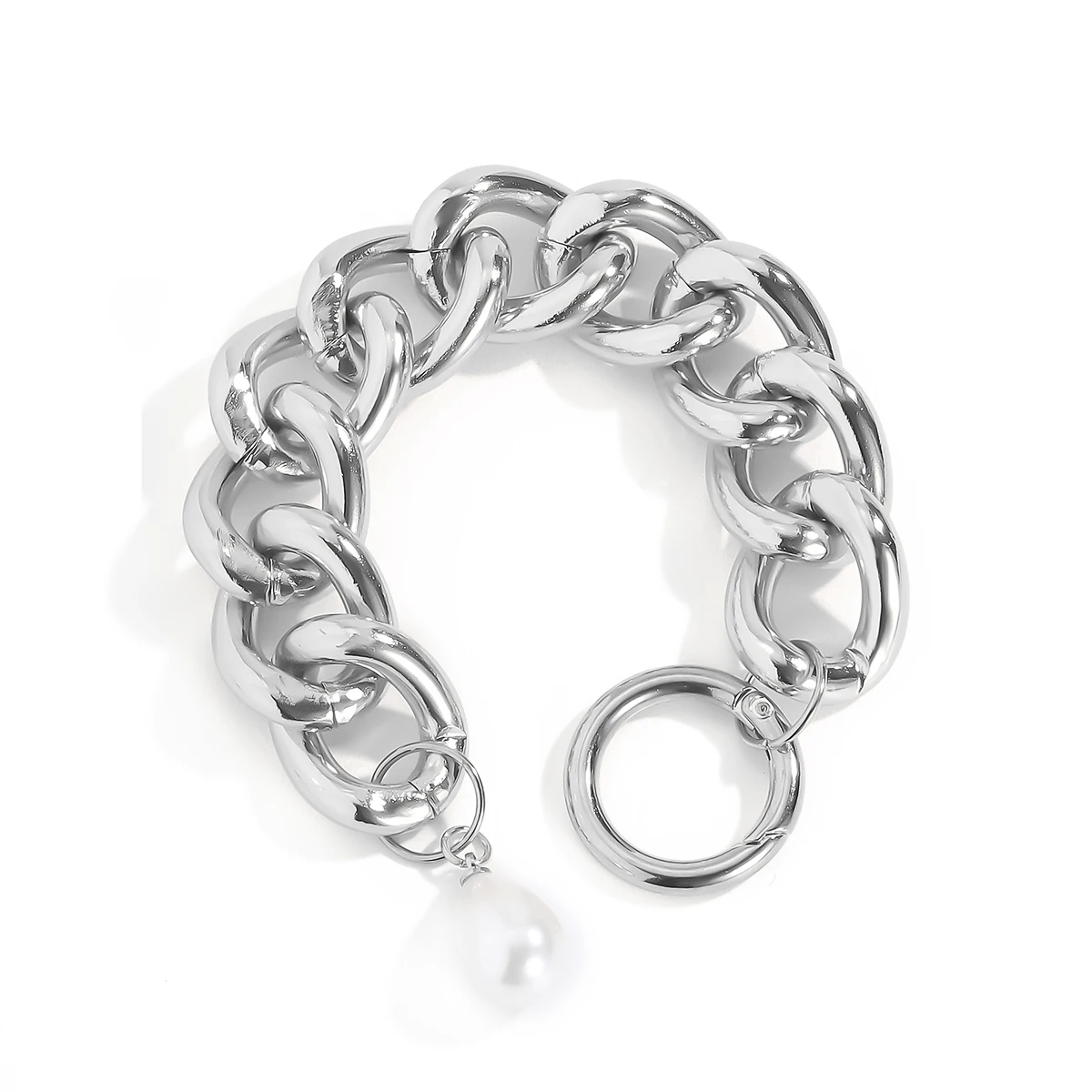 Женский браслет-цепочка SHIXIN, толстый кубинский браслет-цепочка, жемчужина, кулон, браслет