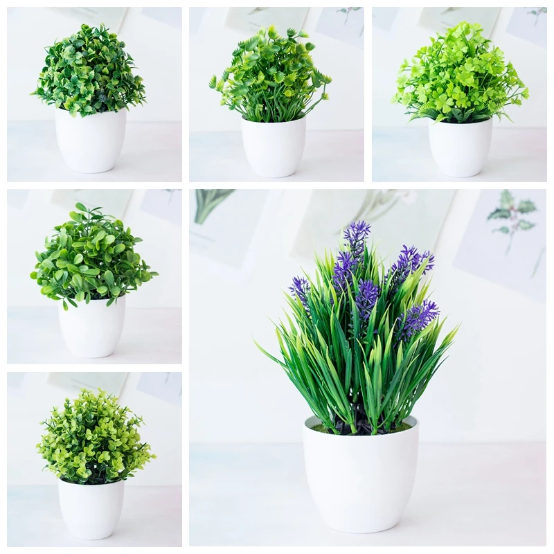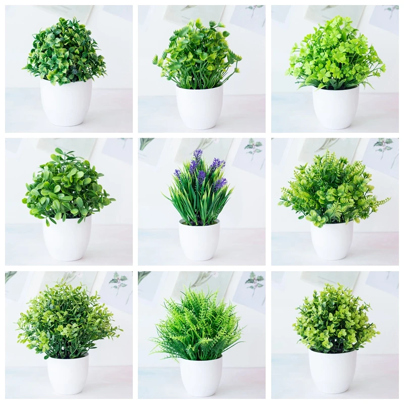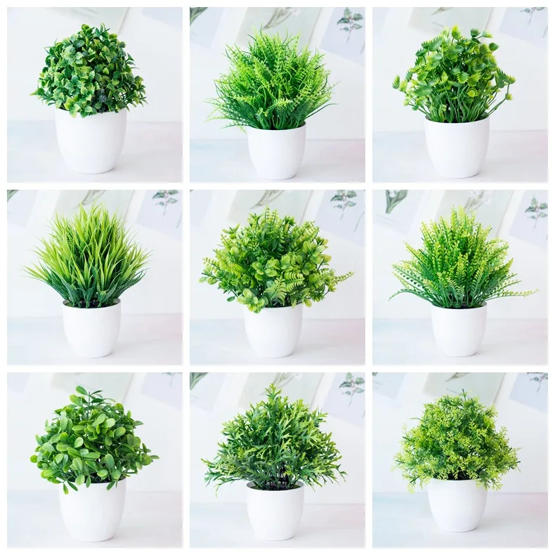 Искусственная трава бонсай в горшке, зеленые искусственные растения...