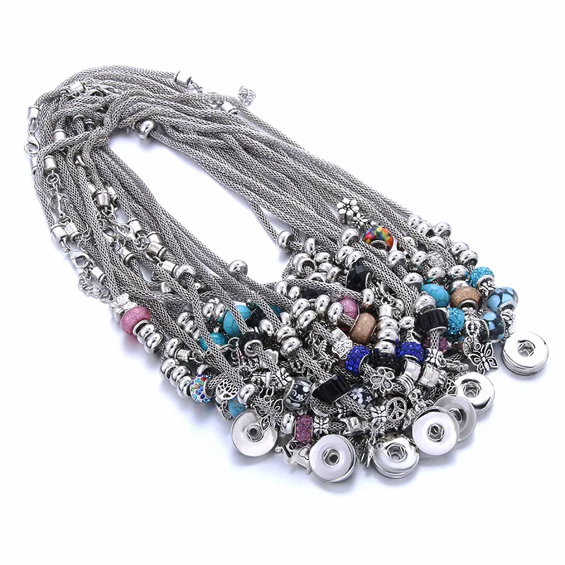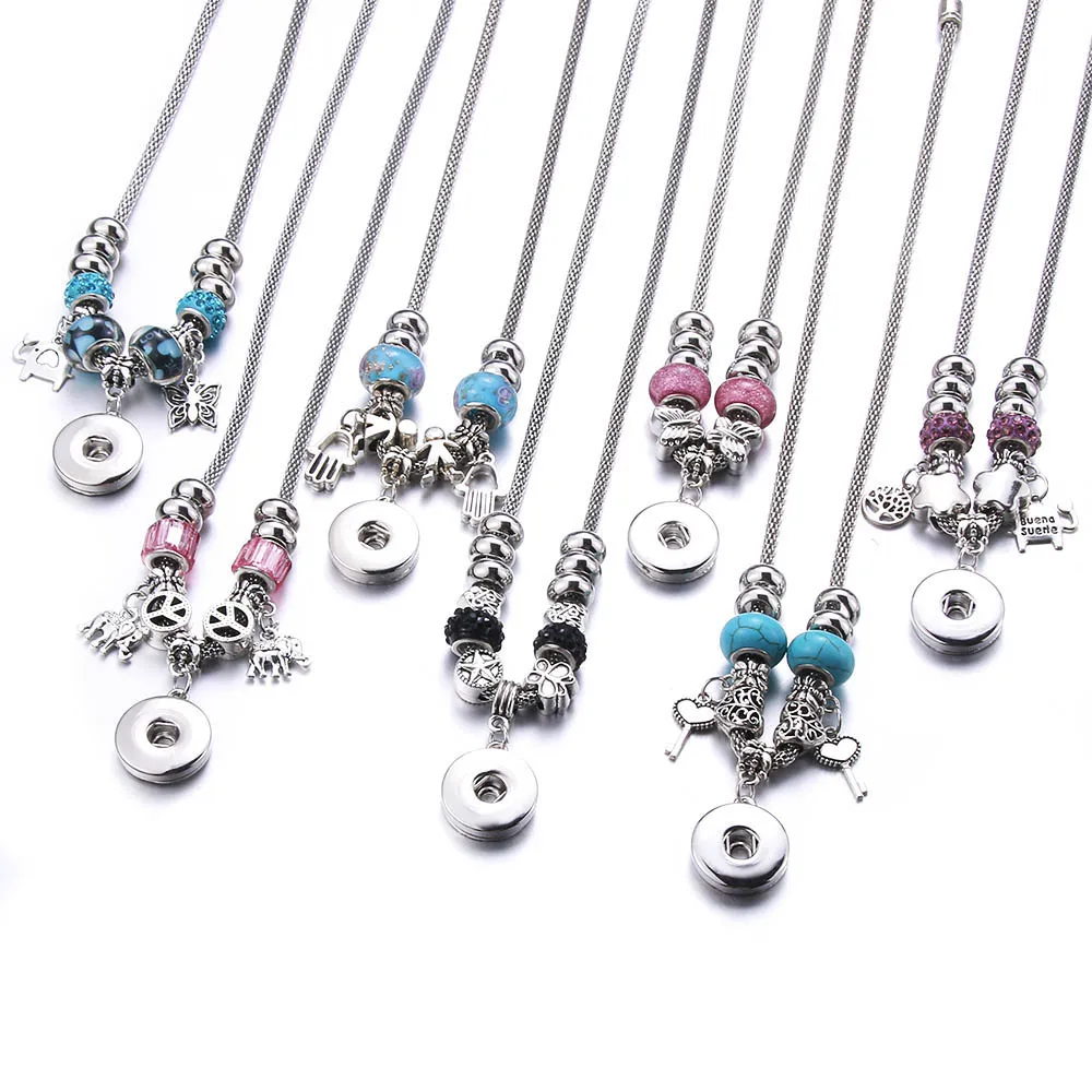 Оптовая продажа Кнопка оснастка ювелирной ожерелье ручной работы DIY очарование бисера ожерелье с кнопкой 18 мм20 мм кнопки ювелирные изделия из бисера, ожерелье