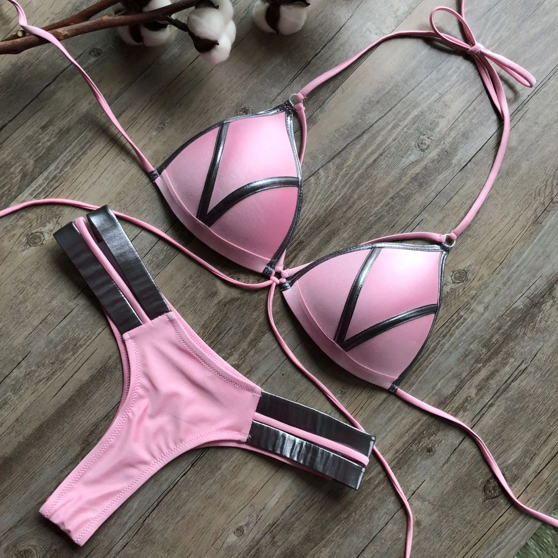 Розовый сексуальный бикини 2019, купальник с пуш-ап, женское бикини...
