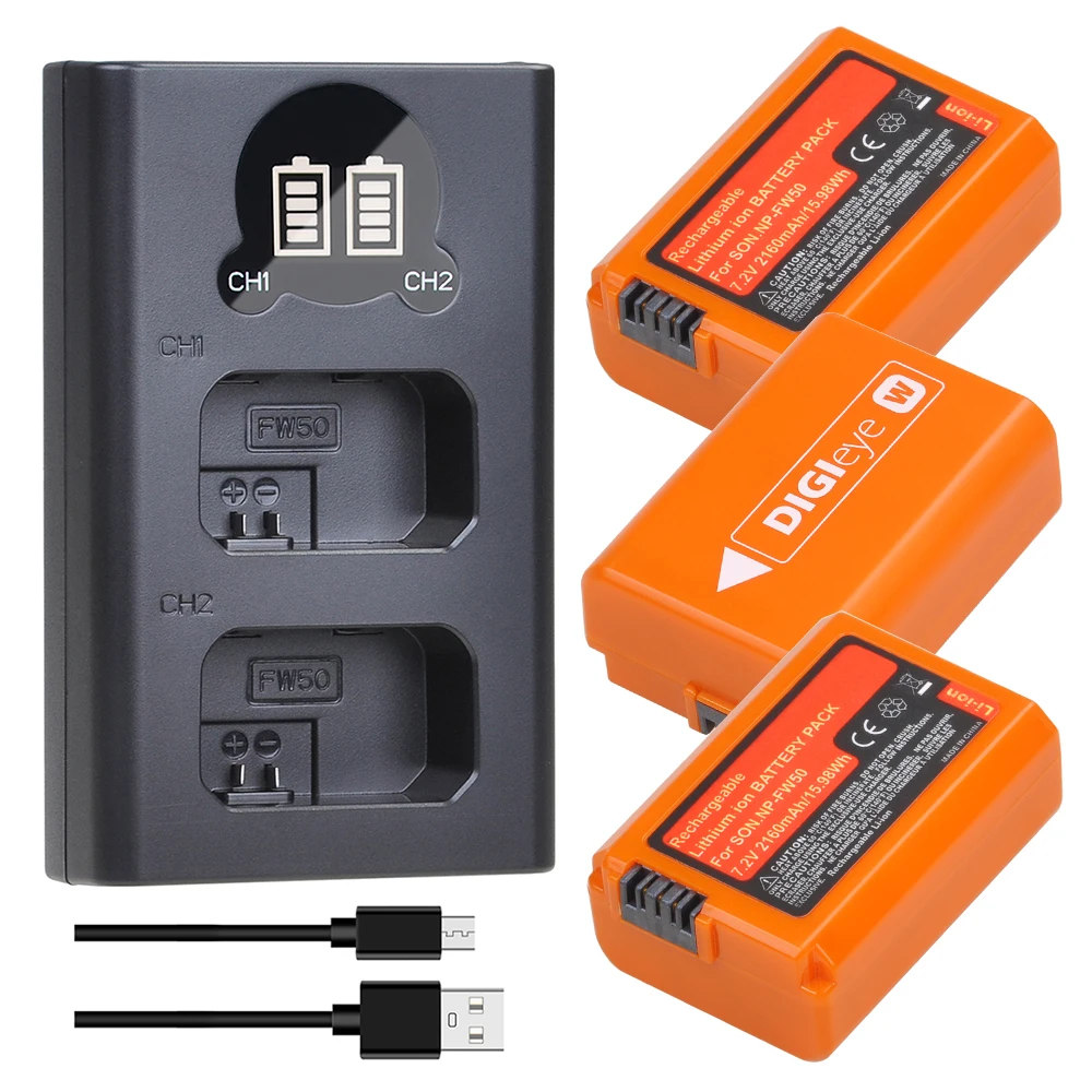 Аккумулятор NPFW50 NP FW50 + двойное зарядное устройство со светодиодной подсветкой для Sony Alpha a7 a7II a7R a7RII a6000 a6300 a6400 a6500 RX10 RX10II, NP-FW50