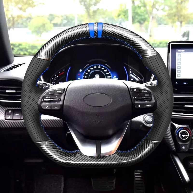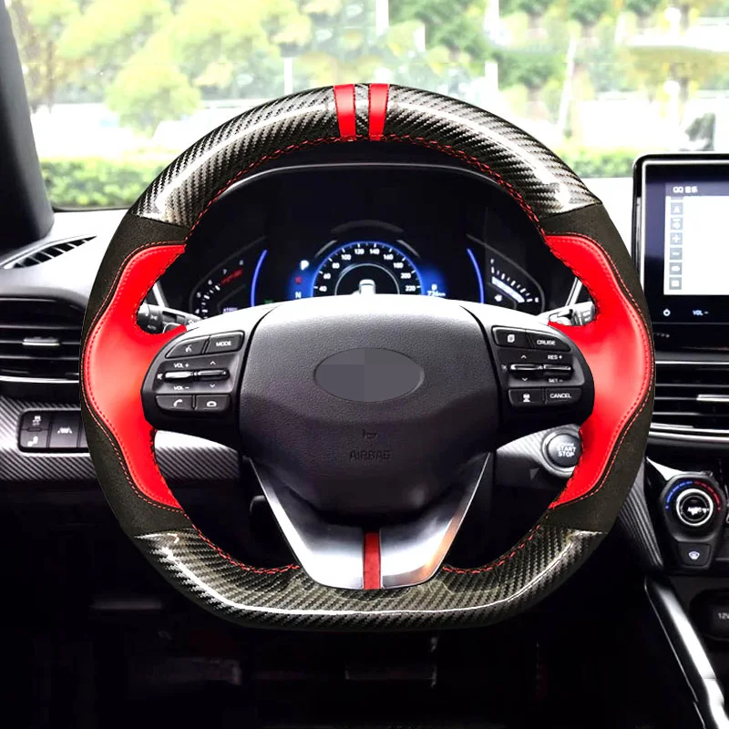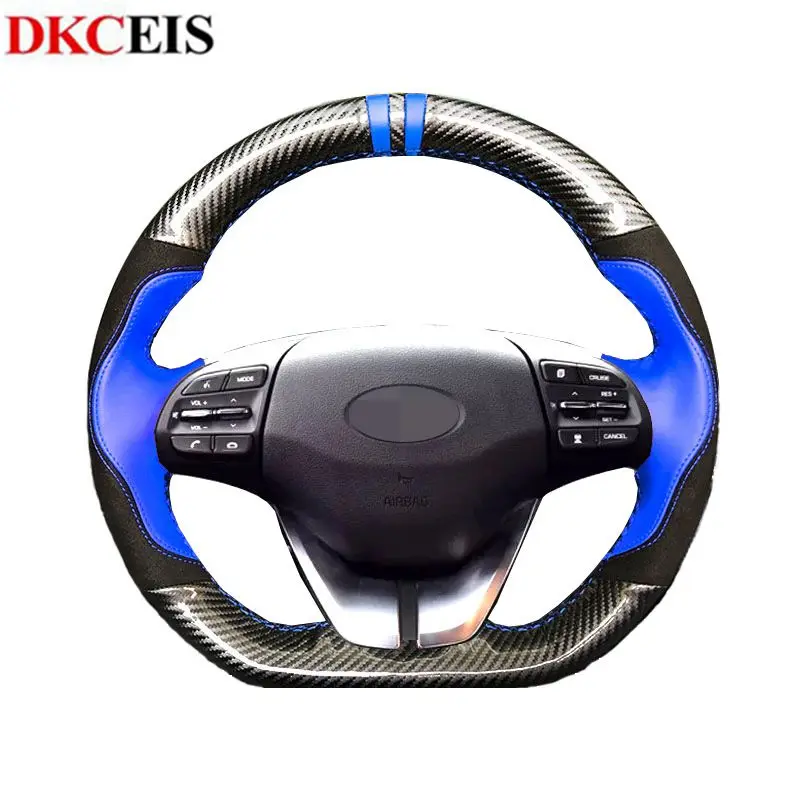Ручное шитье углеродного волокна Черная замша чехол рулевого колеса...