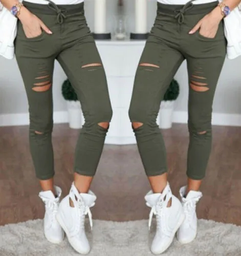 Повседневные обтягивающие джинсы с высокой талией, женские Стрейчевые джинсы с дырками, узкие джинсовые брюки-карандаш, брюки, армейский зеленый белый черный XXL