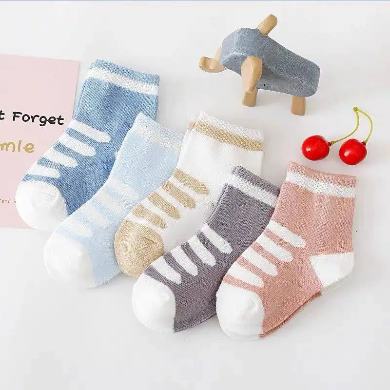 5 цветов, детские мягкие хлопковые носки для мальчиков, девочек, детей, милые Мультяшные теплые модные спортивные носки в полоску, осенне-зимние детские носки