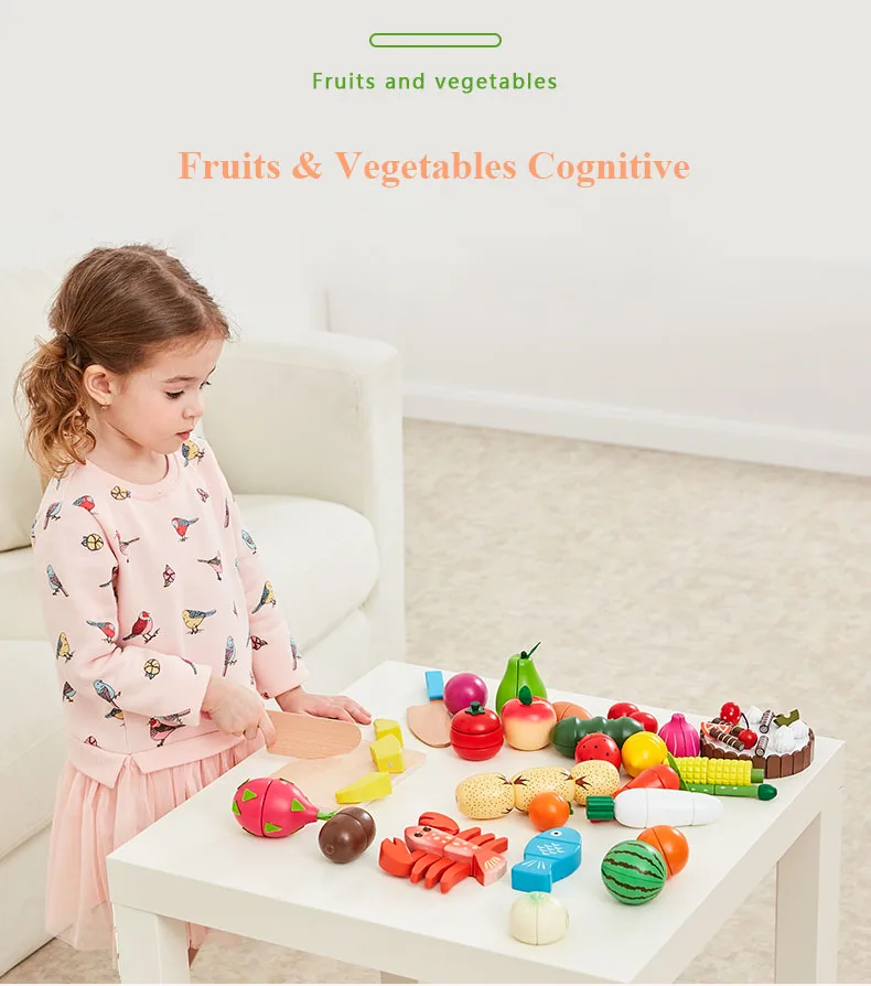 Игрушка Woo, Деревянная Классическая игра, имитация кухонной серии, игрушки для резки фруктов, овощей, набор игрушек, Монтессори, подарок для раннего развития