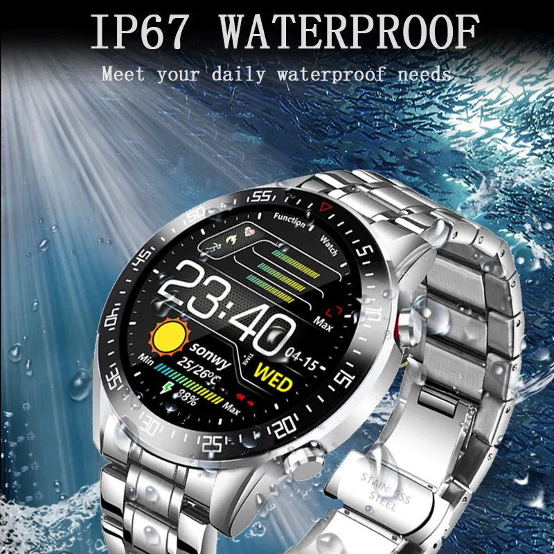 Смарт-часы мужские, со стальным ремешком, IP68, сенсорный экран