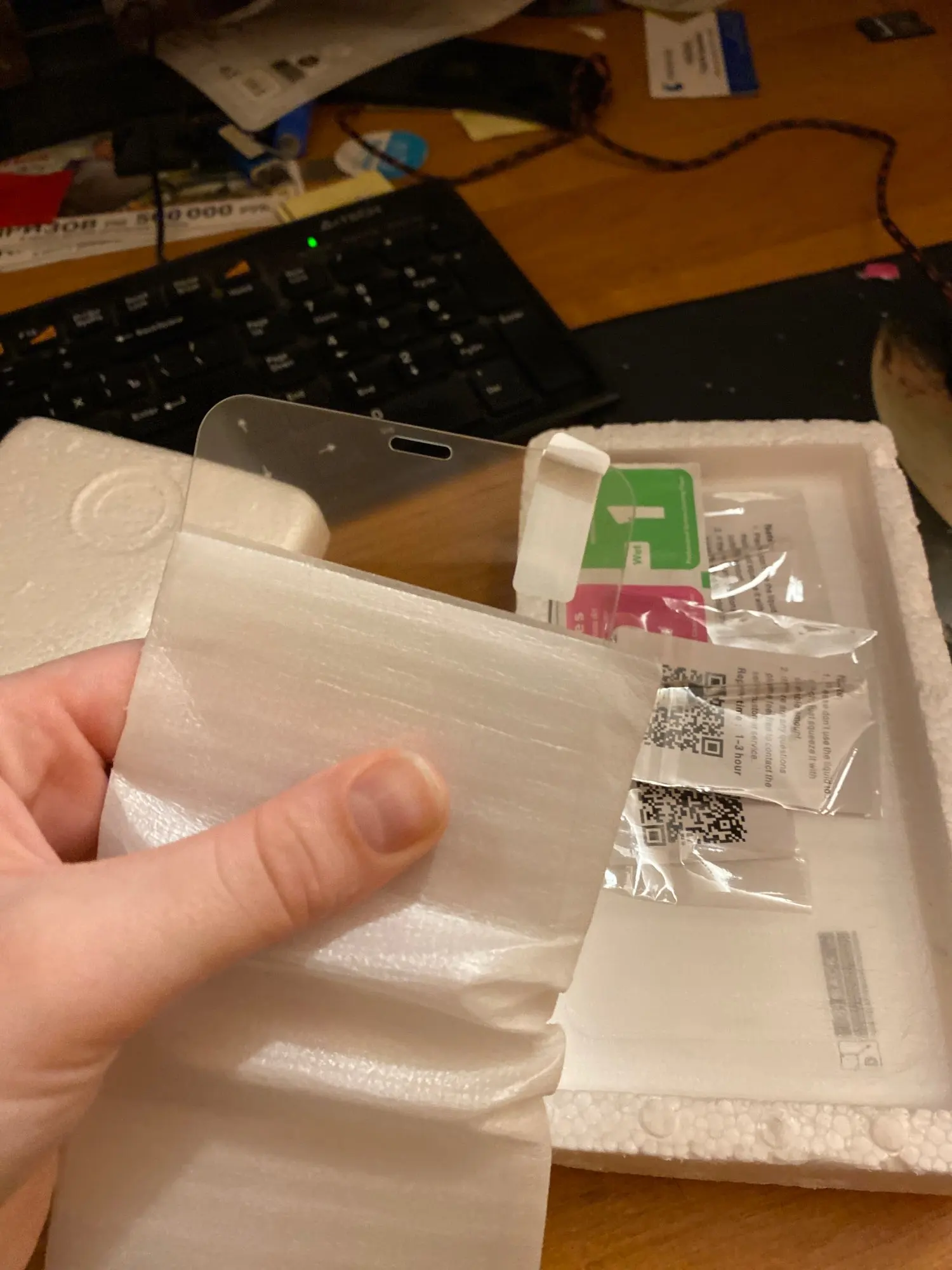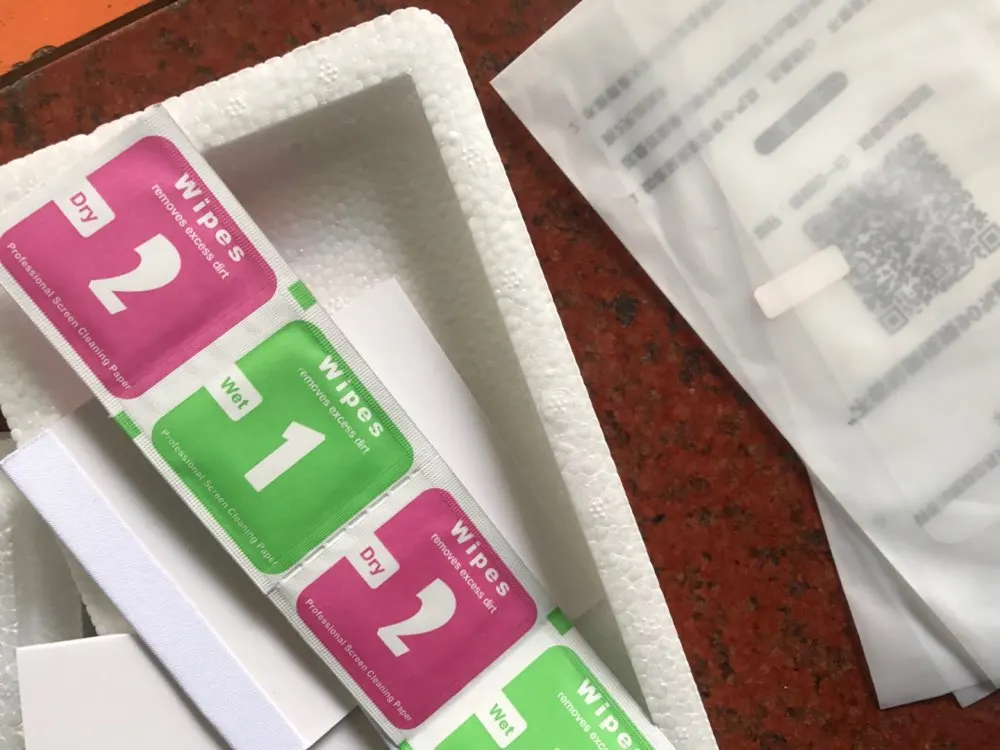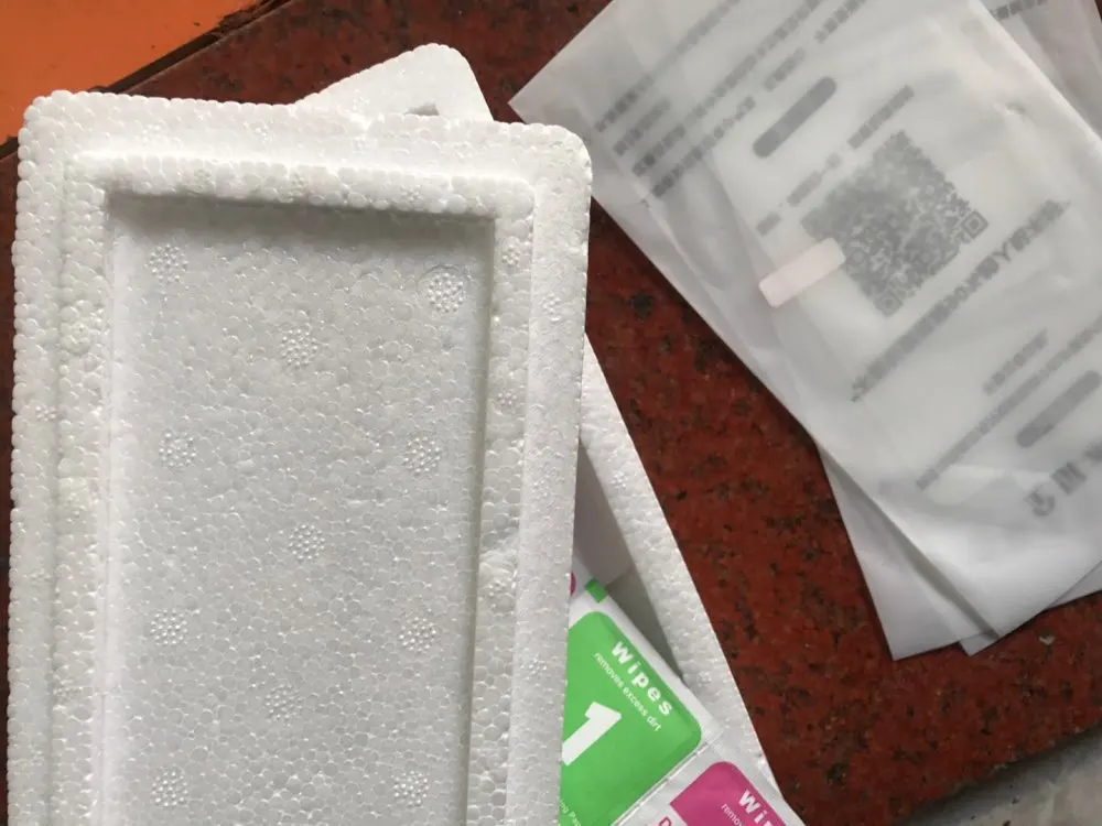упаковано очень хорошо в пенопластивовый бокс, три экрана, покеа не приклеил. Отслежка очень плохо сработала, товар пришел через 15 дней, но получил через месяц ,случайно зайдя на почту. Лучше самим проверять с почтой россии. оказалась очень удобно наклеивать, продумано, так, чтобы без ошибок сделать. сначала прицеливаешь весь экран, потом посередине центральную часть отклеивается и пока держишь верх, середина приклеивается, но не само стекло а запасная клейкая. только потом, когда убедился, что все ровно, отклеиваешь нижнюю часть и аккуратно выводишь пузырьки, и уже после, отклеиваешь середину клейкую, а под ней финальное стекло, и вместе с серединой ведешь вверх до конца. специальный скребок в комплекте есть. один момент - вверху на стекле есть маленькая выпуклость, ее лучше сразу отрезать. когда отрываешь в финале по дырочкам, все равно остается неровный кантик..русские поймут вообщем..советую