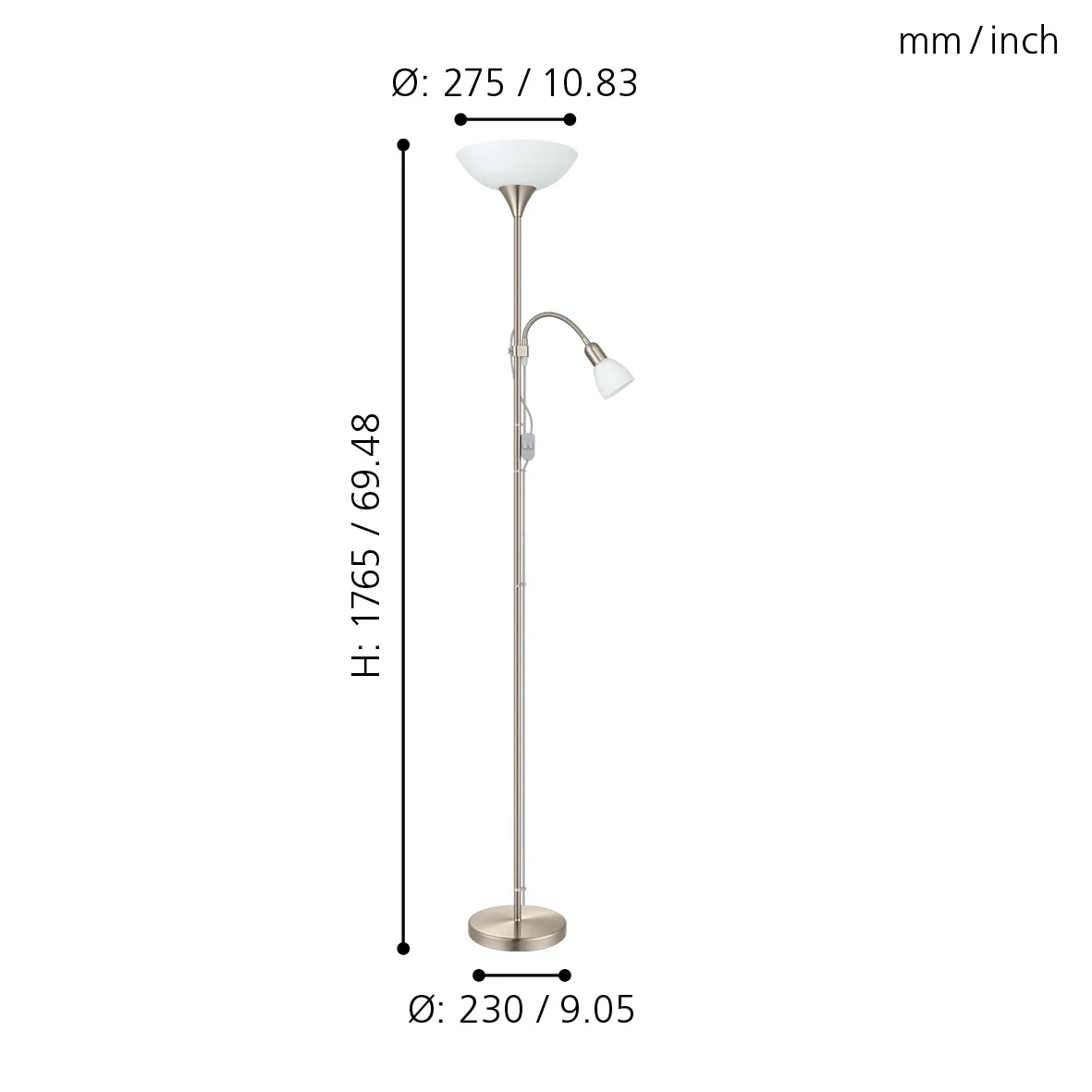 Eglo 82842 Торшер UP 2, 1х60W(E27), 1х25W (E14), Ø275, H1765, никель мат./cтекло, белый