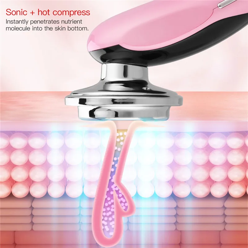 7 в 1 EMS LED Photon Sonic горячий компресс Электрический массажер для лица Омоложение кожи лица против морщин лифтинг Укрепляющий красота