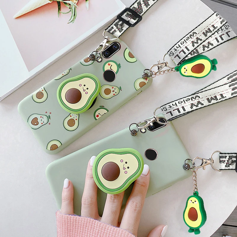 3D роскошный милый мультяшный чехол для телефона с фруктовым держателем для huawei y9 y5 y6 y7 prime 2019 2018 чехол для телефона с ремешком авокадо