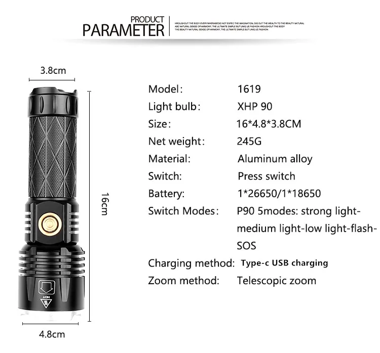 Супер яркий xhp90.2 самый мощный светодиодный фонарик usb xhp50 перезаряжаемые тактические фонарики 18650 или 26650 ручной фонарь xhp70 для кемпинга