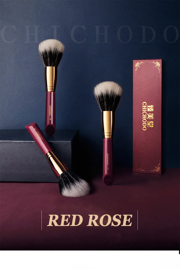 Кисть для макияжа CHICHODO, роскошная серия Red Rose, высококачественная кисть из волоса козла для пудры, натуральные волосы, инструмент для макияжа