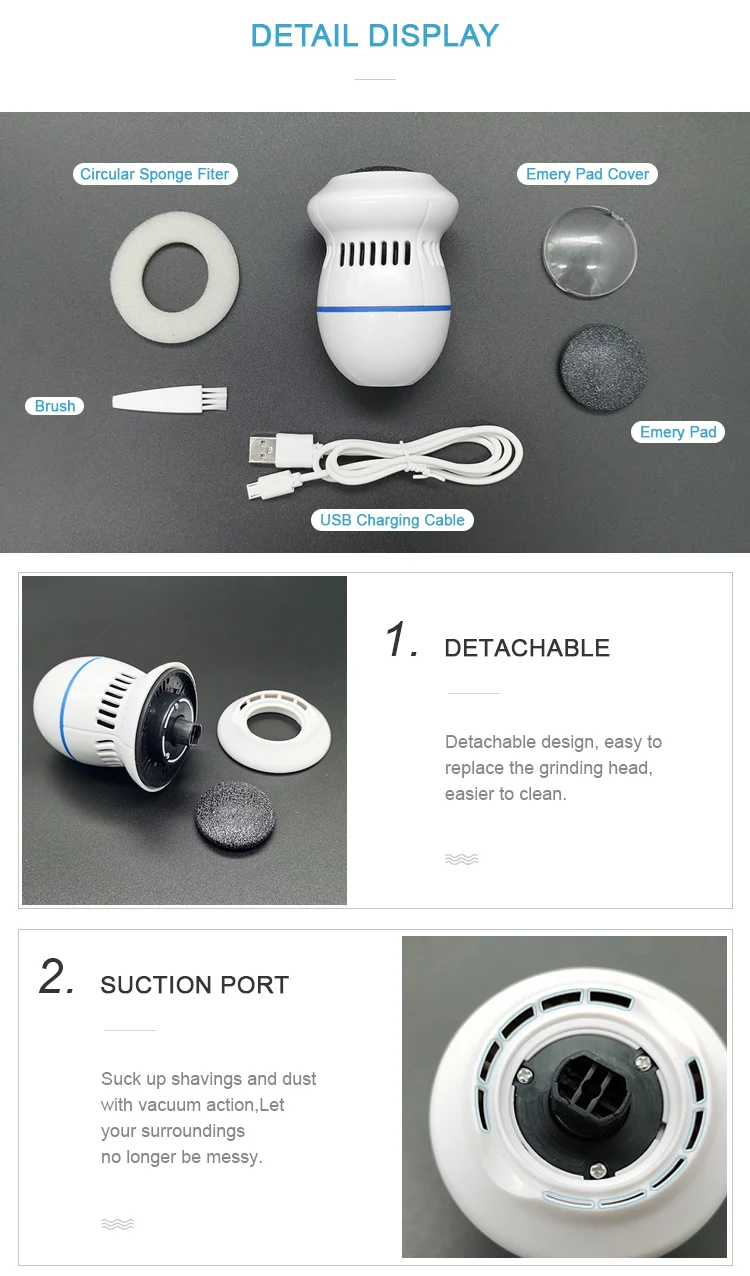 Особенности: 1. Две скоростные модели: эргономичный дизайн имеет 2 скорости, а также шлифовальную подушку и полировальную подушку. С помощью этого перезаряжаемого устройства вы можете удалить гневные мозоли в любом месте и в любое время, и ваша окружающая среда останется чистой. 2. Удаление омертвевшей кожи: продукт-единственный моторизованный средство для удаления мозолей с уникальной технологией, которая всасывает омертвевшую стружку при использовании. 3. Высокая производительность и мягкость: головка вращается со скоростью более 2000 об/мин для удаления мозолей, а кожа отполирована и отполирована. Описание: Обычная пилка натирает и повреждает кожу, вызывая боль и дискомфорт. Этот продукт может удалить неудобные мозоли и разгладить Потрескавшиеся пятки, не повредив ваши стопы! Характеристики: Материал: металл, пластик Функция: электрические мозоли удаляют мозоли и пылесосы Режим питания: перезаряжаемый Скорость: 2000 об/мин Размер: 170*140*170 мм Цвет: белый Посылка 1 x пилка для ног, инструмент для педикюра 1 x USB-кабель для зарядки 1 x алмаз песчаник 1 х полированный матовый камень 1 х Кисть 1 х Руководство Примечания: 1. Из-за разницы между различными мониторами изображение может не отражать реальный цвет изделия. Мы гарантируем, что модель реального изделия не отличается от представленной на фото. 2. Из-за ручного измерения и различных методов измерения допускается отклонение. Спасибо!