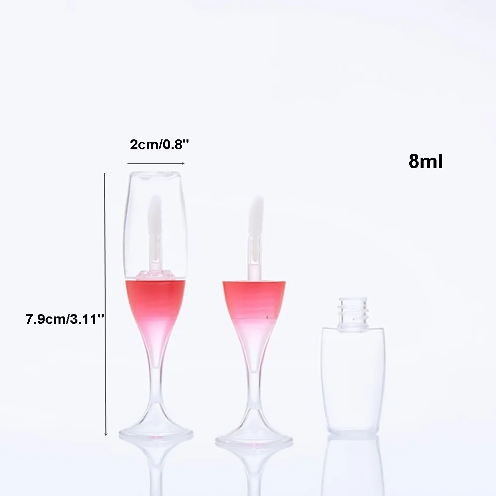 Бесплатная доставка, 8 мл, пустая туба для блеска для губ в форме бокала для вина, креативные многоразовые флаконы, блестящие разноцветные флаконы для губ розового и белого цветов