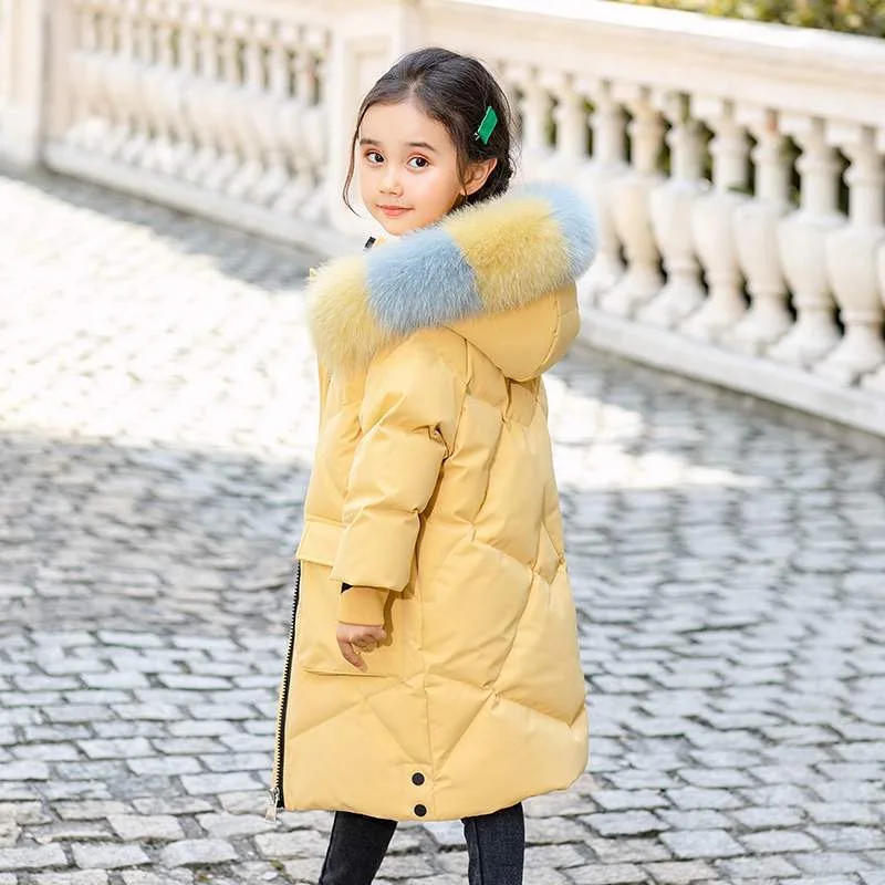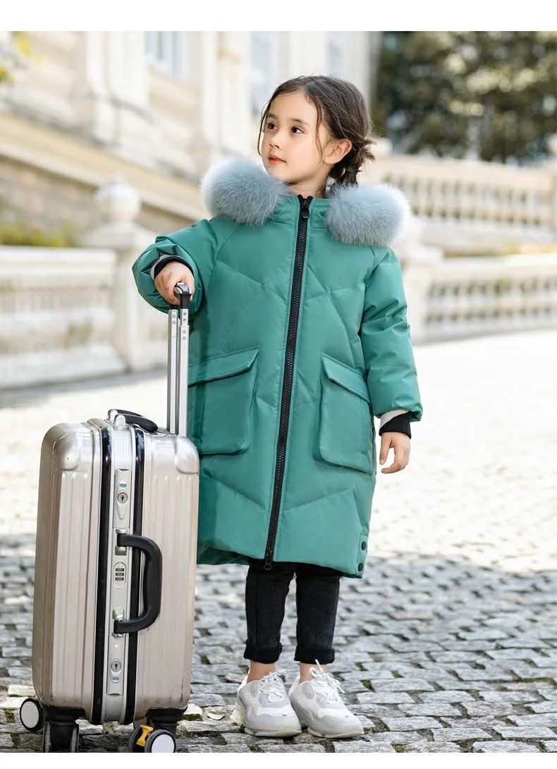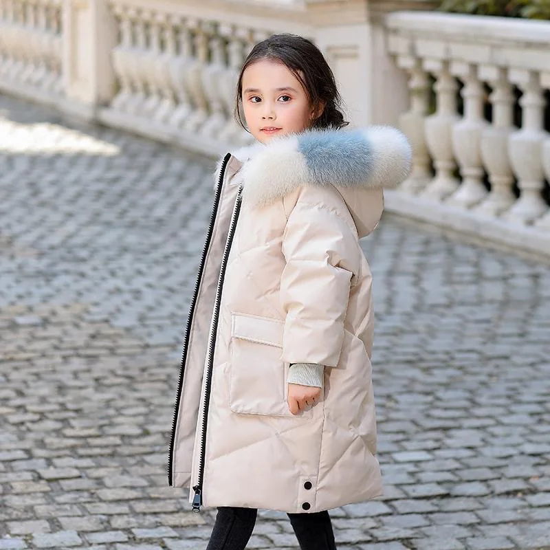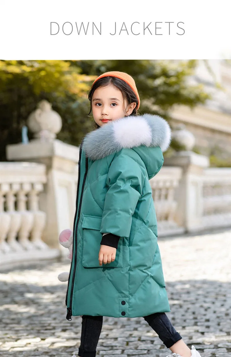 Куртки для девочек, теплые и ветрозащитные зимние длинные пуховики,...
