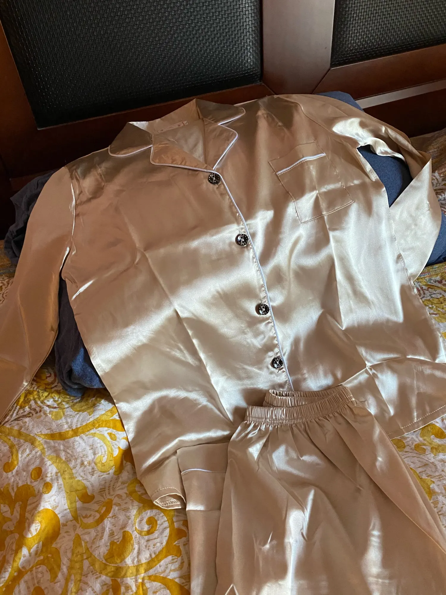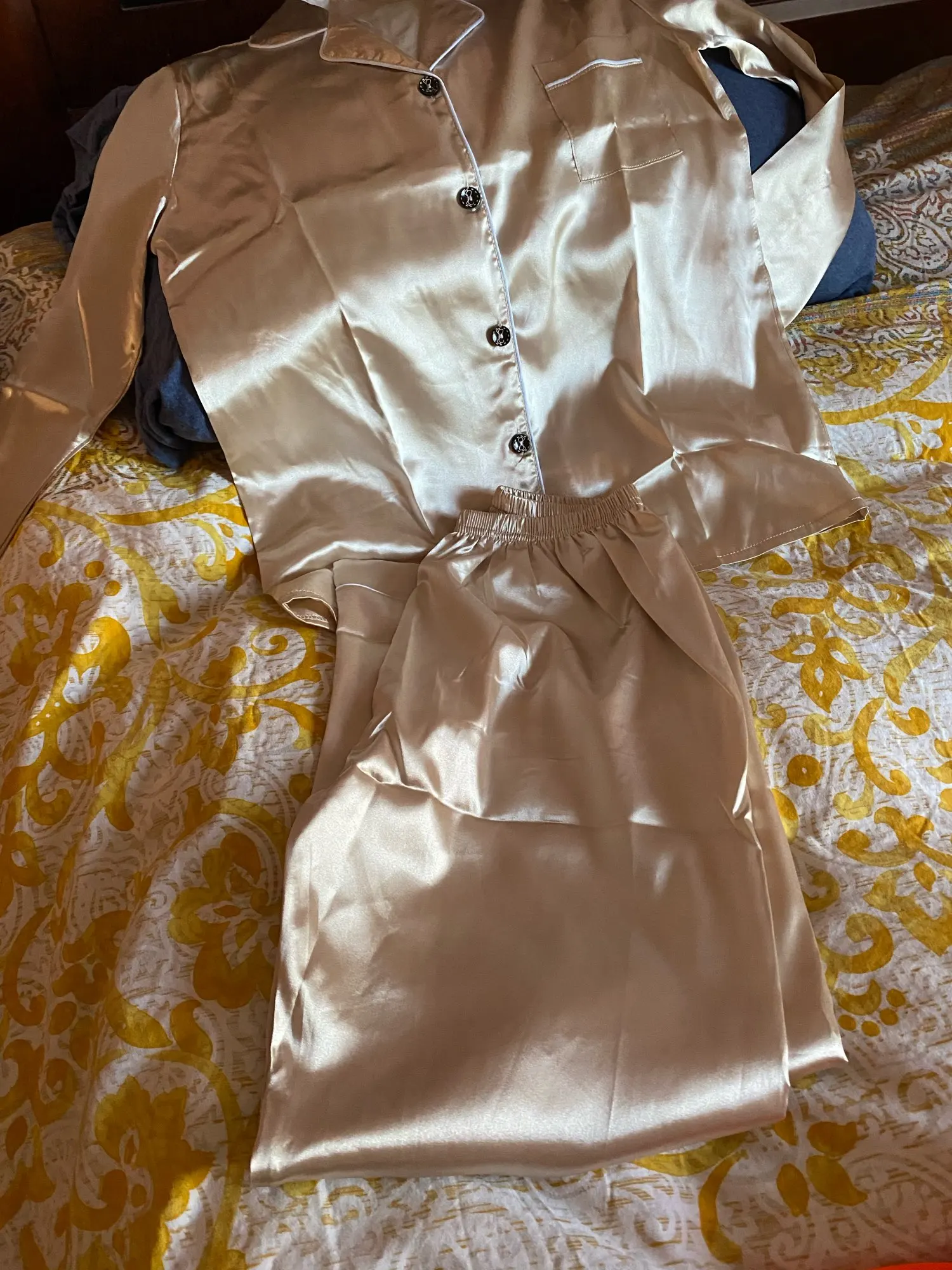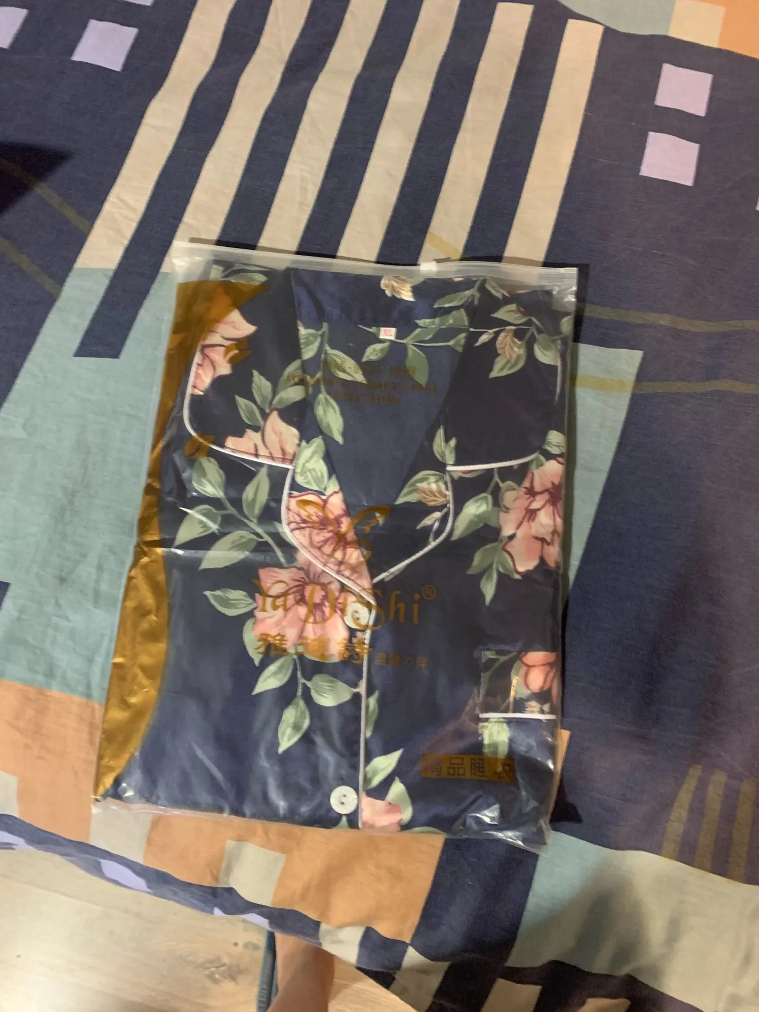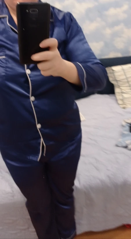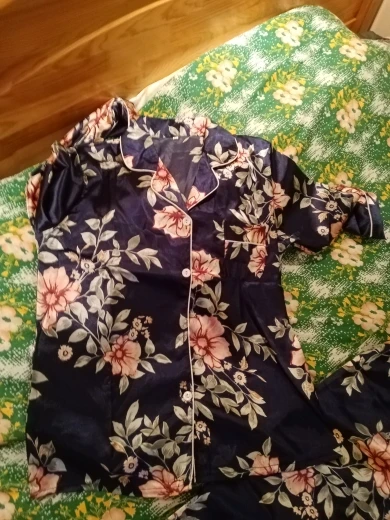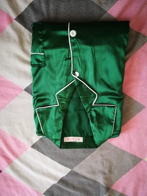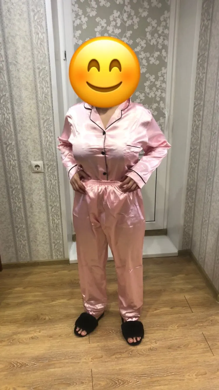 Пижама класс. Не шёлк, но очень хорошего качества. Сшито аккуратно и качественно. На рост 160, размер 34. Подошла L-ка. Резинка у штанов очень тугая, на узкую талию и пуговки не очень понравились. Но в целом цена-качество супер.с продавцом не общалась, товар быстро пришёл до европы