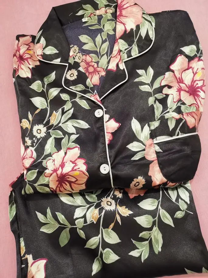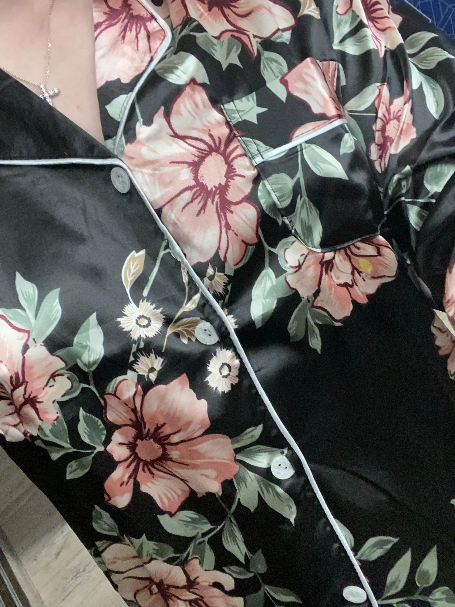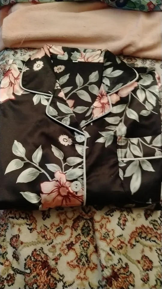 продавец очень общительный, очень добрый, на все вопросы отвечает с уважением. быстро обработал и отправил заказ. заказ прибыл примерно за 20 дней. пижама хорошая. приятная к телу. правда не атлас конечно же. но удобно носить и даже спать. красиво смотрится. мой рост 150 параметры 85-65-90 пижаму взяла размер М. подошло идеально ,т.к хотела, конечно сидит свободно но это хорошо , меня устраивает. размер М подойдёт девушкам ростом до 160 думаю. резинка на штанах не жмет. сидит хорошо. цвет брала черный цветочный , в жизни красивее богаче смотрится чем на фото у продавца. однозначно рекомендую к покупке. куплю еще в другом цвете.