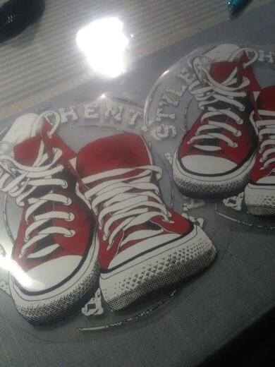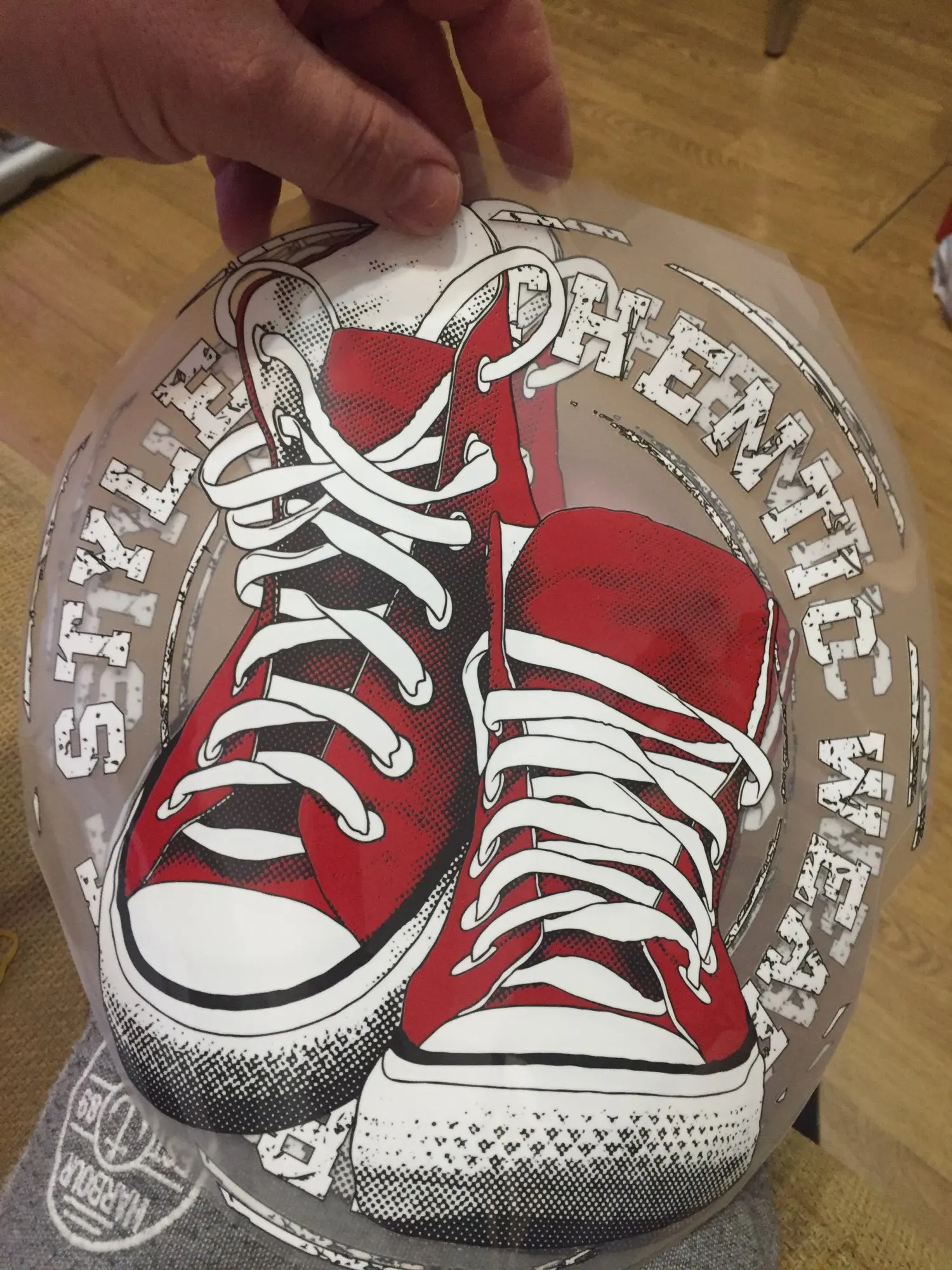 Очень понравилось, как упакована наклейка, намотана на валик из утеплителя, а потому в процессе доставки не замялась. Перевела без особых проблем, правда пришлось дополнительно прогревать некоторые места, чтобы наклейка наконец отстала от основы. Что будет после стирки, пока не знаю, но на всякий случай, для начала простирну вручную. Заказывала, чтобы освежить толстовку (точнее, тонковку, так как она не толстая), пока что результатом довольна.