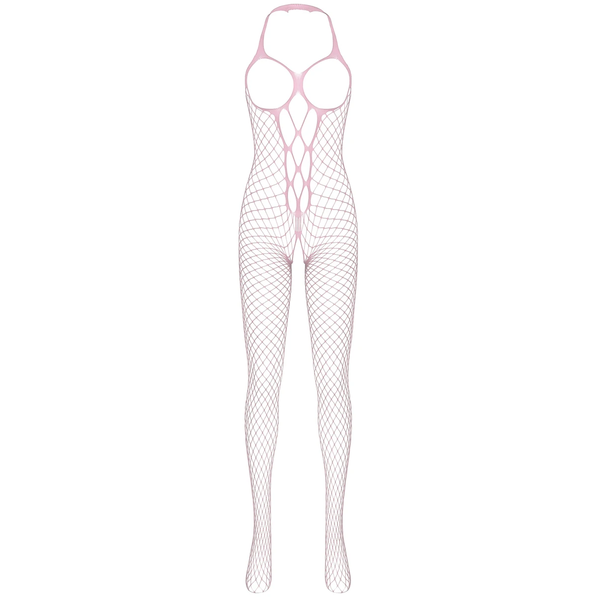 Женское нижнее белье, прозрачное, ажурное, Сетчатое, боди с воротником-хомутом, открытые чашечки, с вырезом, закрытый носок, эластичные чулки для всего тела