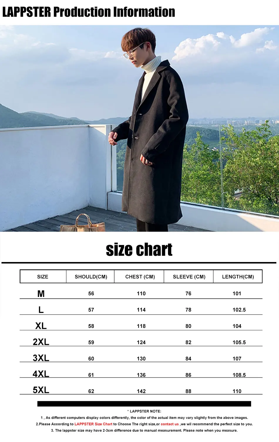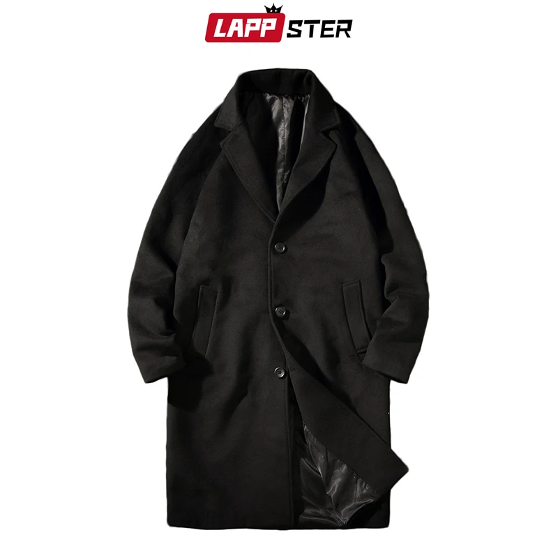 LAPPSTER Men Streetwear Black Overcoat Winter Jacket Coat