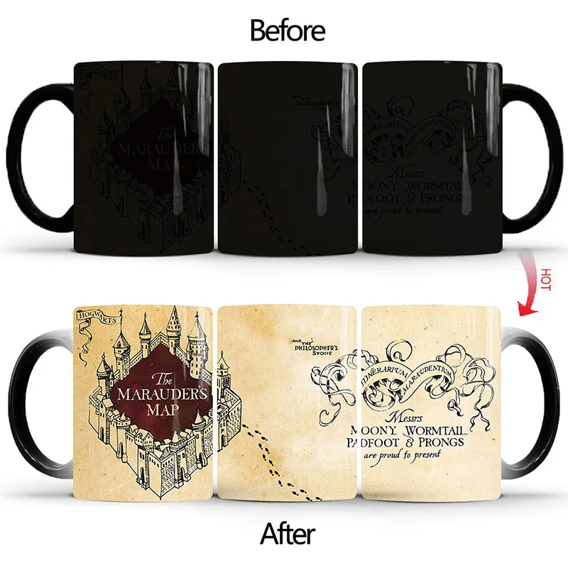 Новинка 2020, 350 мл, карта мародерса, замок, озорство, управляемая, Магическая кружка для кофе, горячая, холодная, меняющая цвет, кружки, керамическая чашка, подарок для друзей