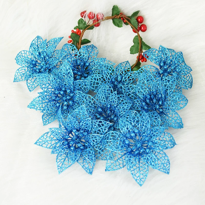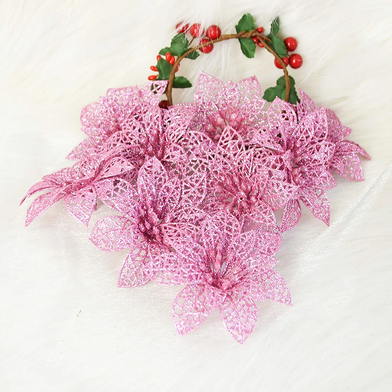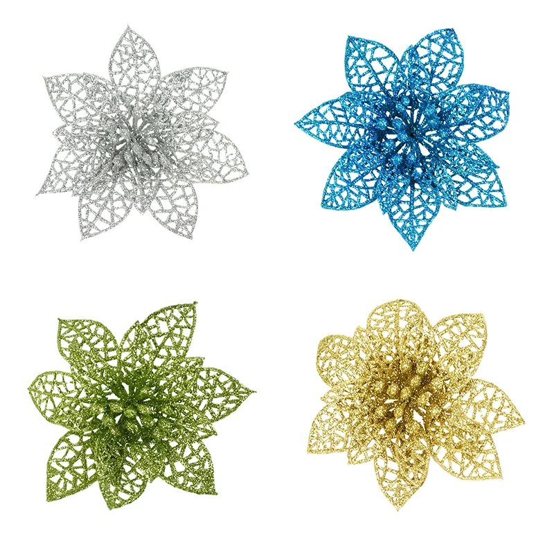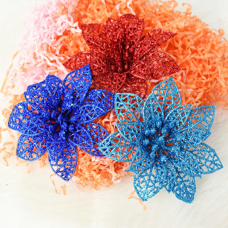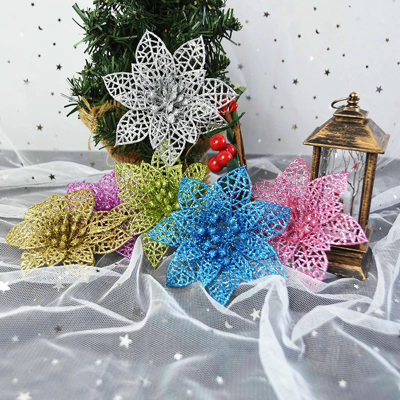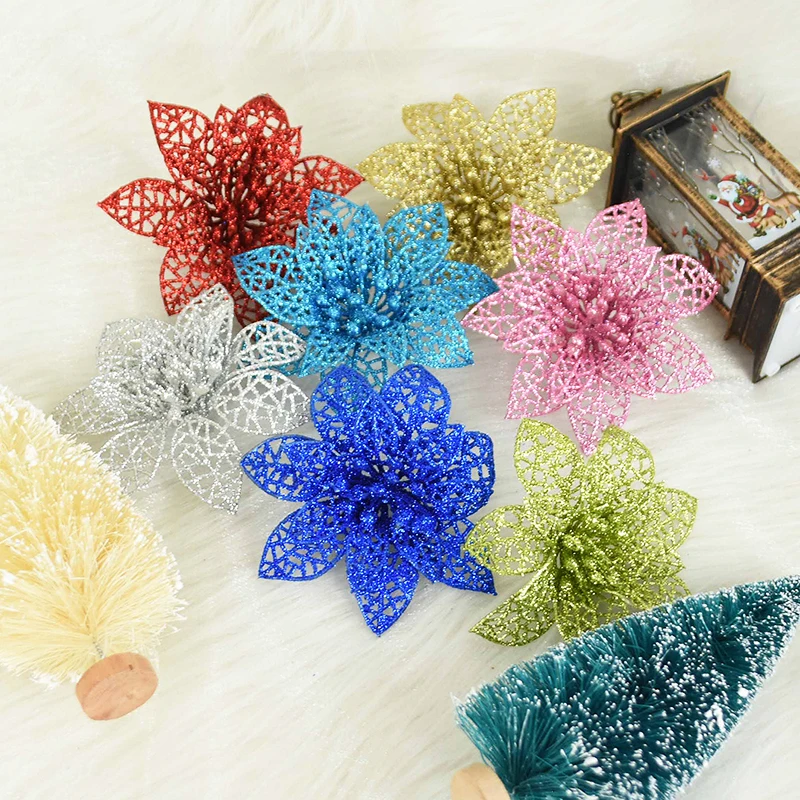 5p 10 см блестящее украшение для рождественской елки, цветок, искусственный цветок на Рождество, украшение для свадьбы, дня рождения, вечеринки, домашний декор