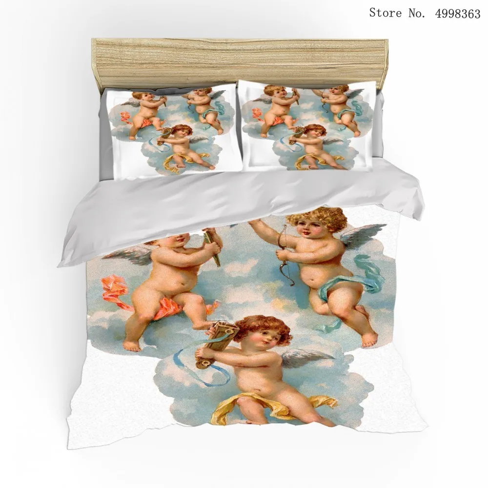 Постельное белье с изображением ангела, картина маслом, Твин, полный, королева, король, двойное постельное белье, ретро комплект постельного белья, Подарочный пододеяльник, 2/3 шт., Комплект постельного белья