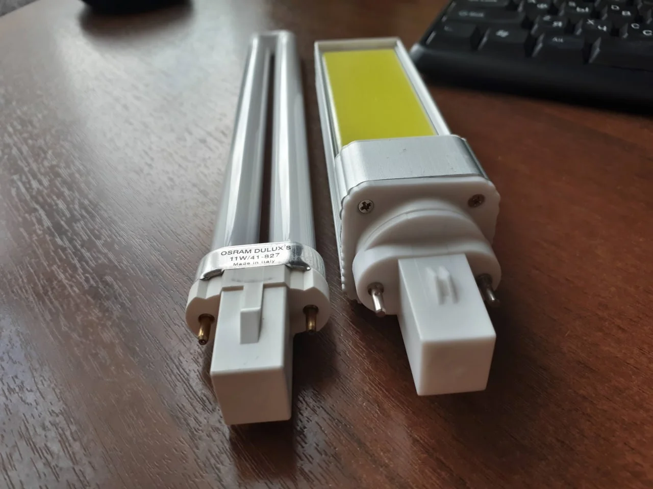 Лампы на сантиметр толще, по сравнению с ртытными, пришлось шаманить посадочные места. Пришло в рабочем состоянии