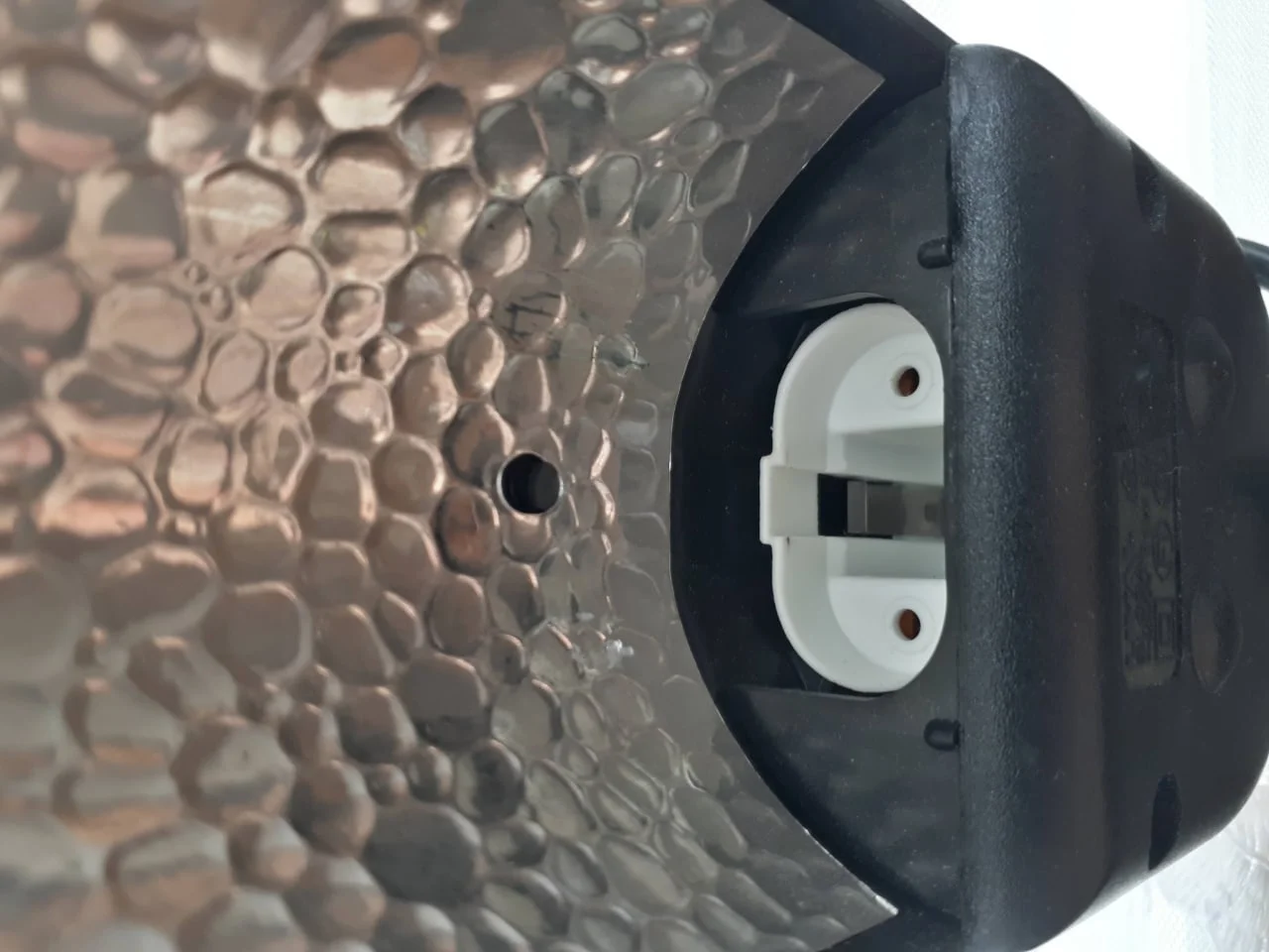 Лампа толще, чем обычные под этот разьем. Пришлось немного убрать лишнее с настольной лампы.