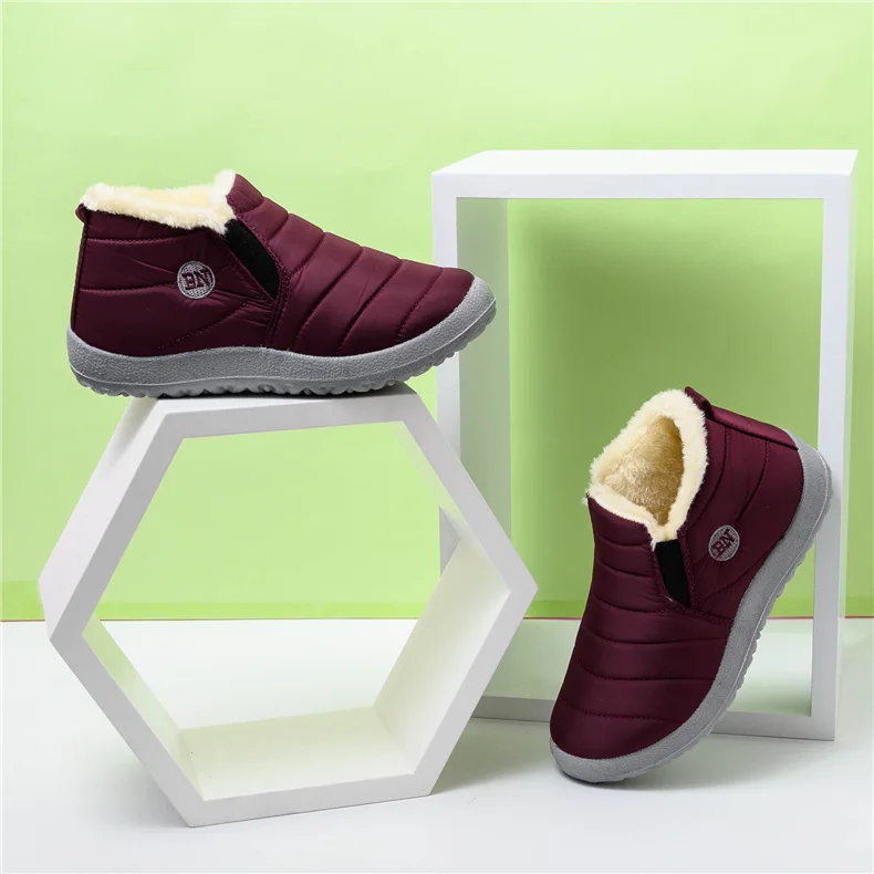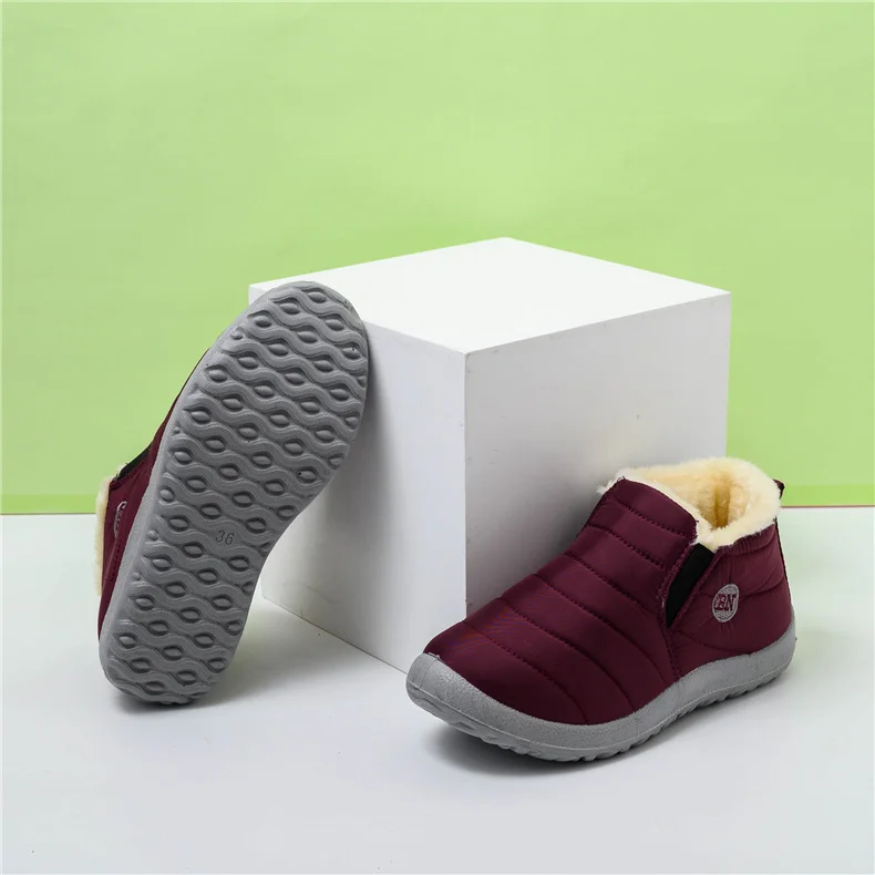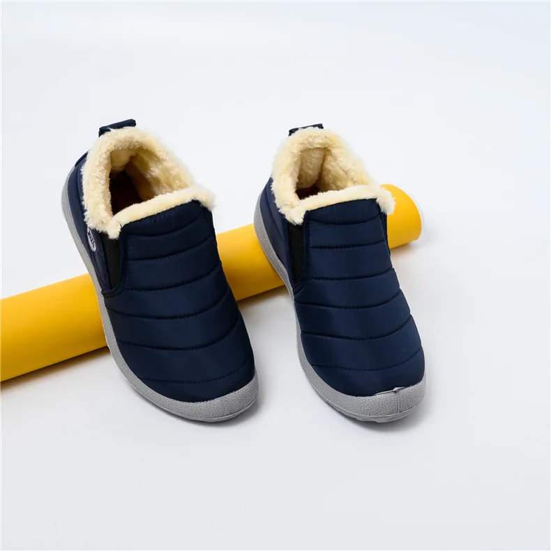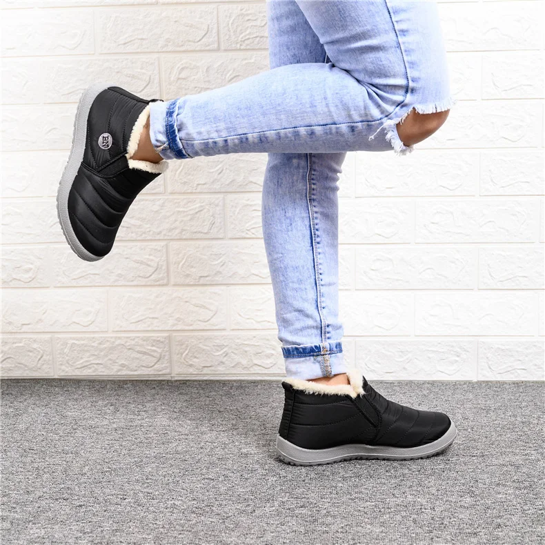Зимние ботинки; Женская спортивная обувь; Теплые плюшевые ботильоны на меху; Зимняя женская обувь без шнуровки на плоской подошве; Прогулочная Водонепроницаемая Ультралегкая обувь