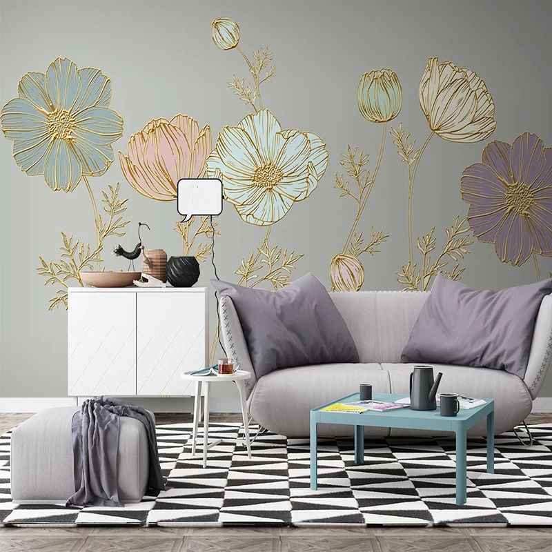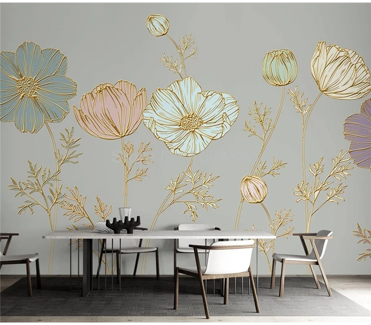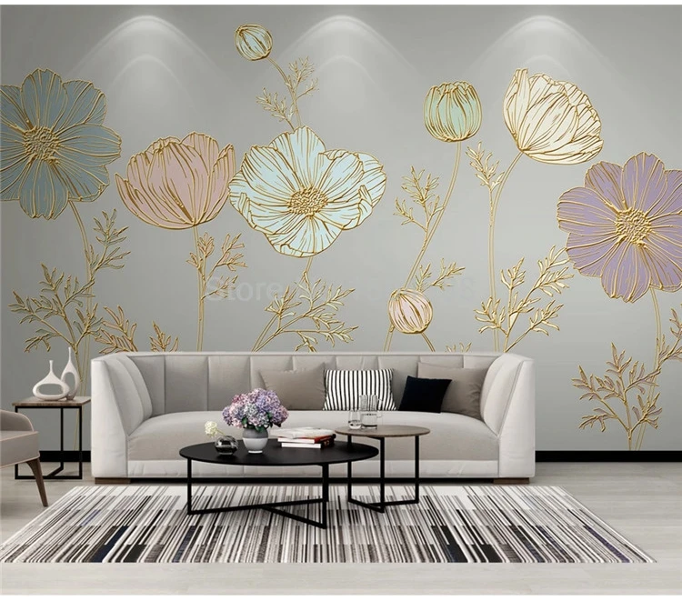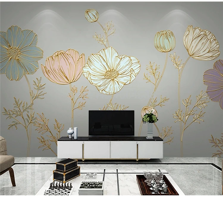 Настенные обои по фото по индивидуальному заказу, легкие Роскошные росписи 3D с растениями, цветами, рельефными линиями для гостиной, ТВ, дивана, спальни, домашний декор
