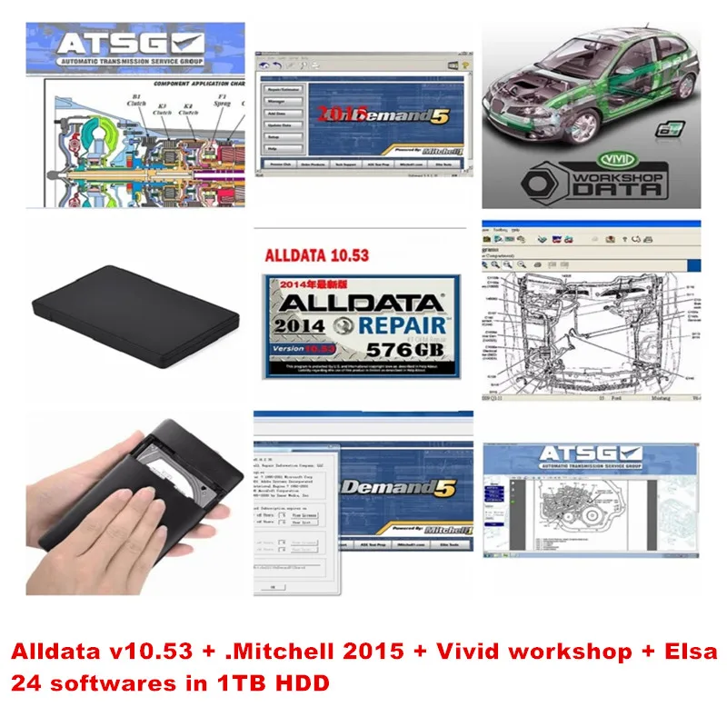 2020 горячая Распродажа Alldata V10.53 программное обеспечение для ремонта авто alldata + Mit/chell 2015 + ImmoKiller + tecdoc + Vivid + Heavy + EtttTK 24in1TB HDD