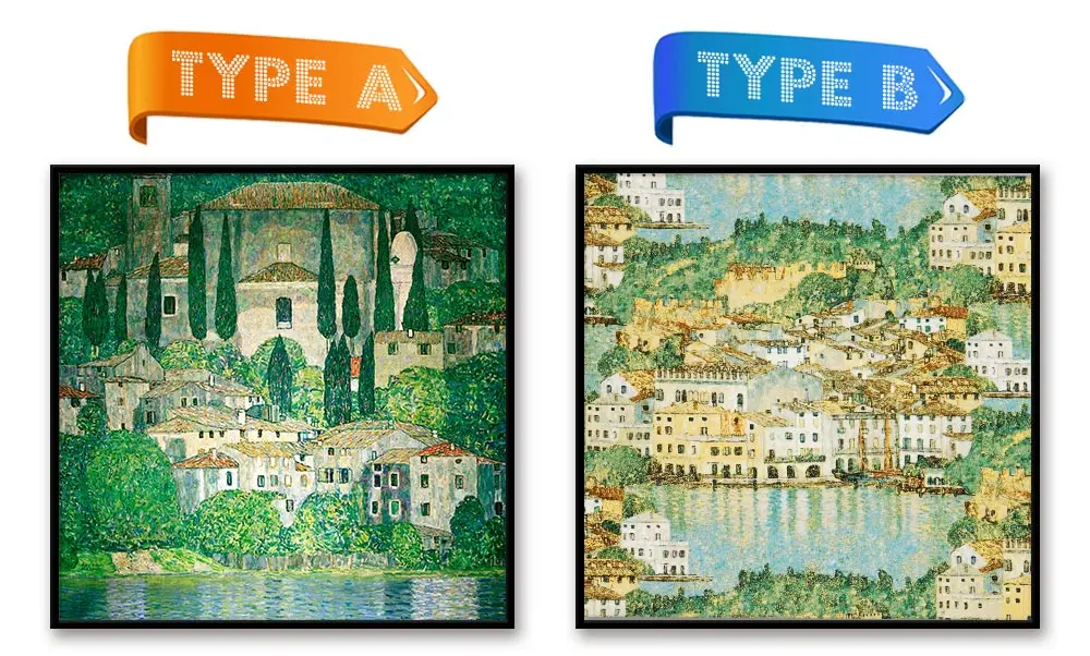Наша полная вышивка крестиком используется усовершенствованная Водорастворимая печать, вы закончили вышивку, вышитая ткань в теплой воде может легко смыть печать. Но частичная вышивка использует технологию 5D печати, более реалистичный цвет, печать не смывается.