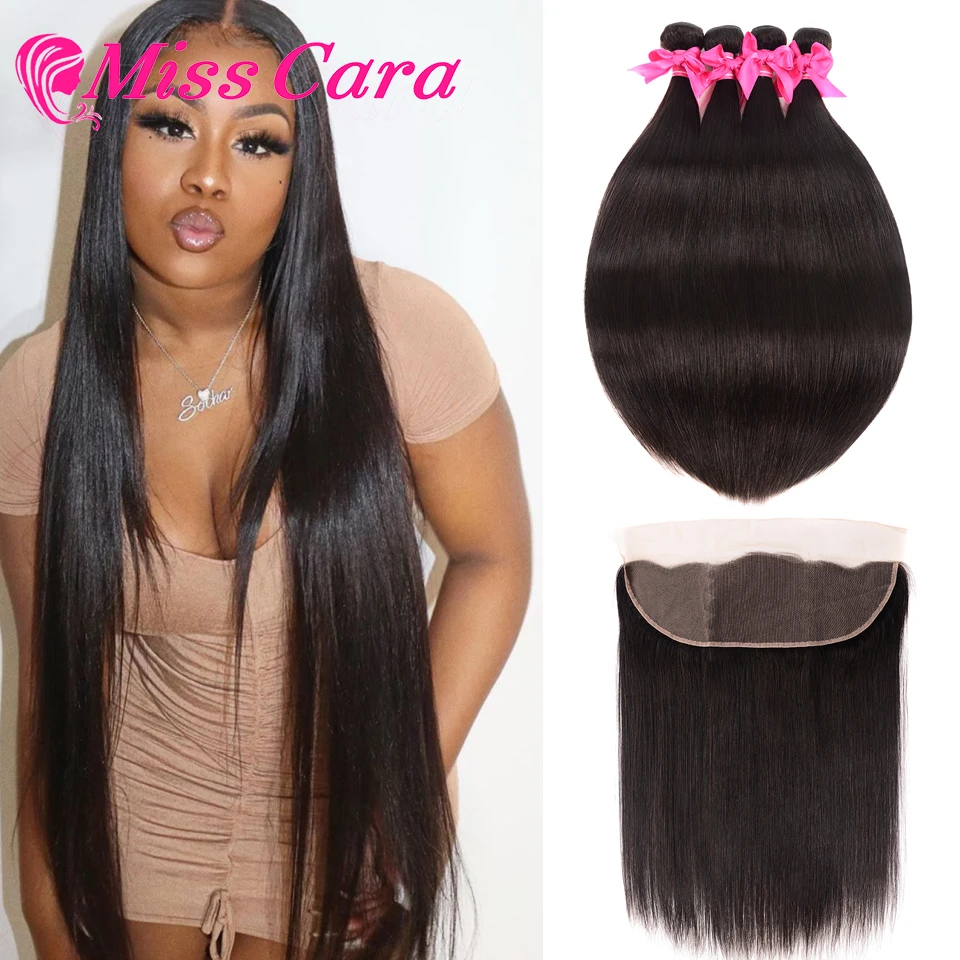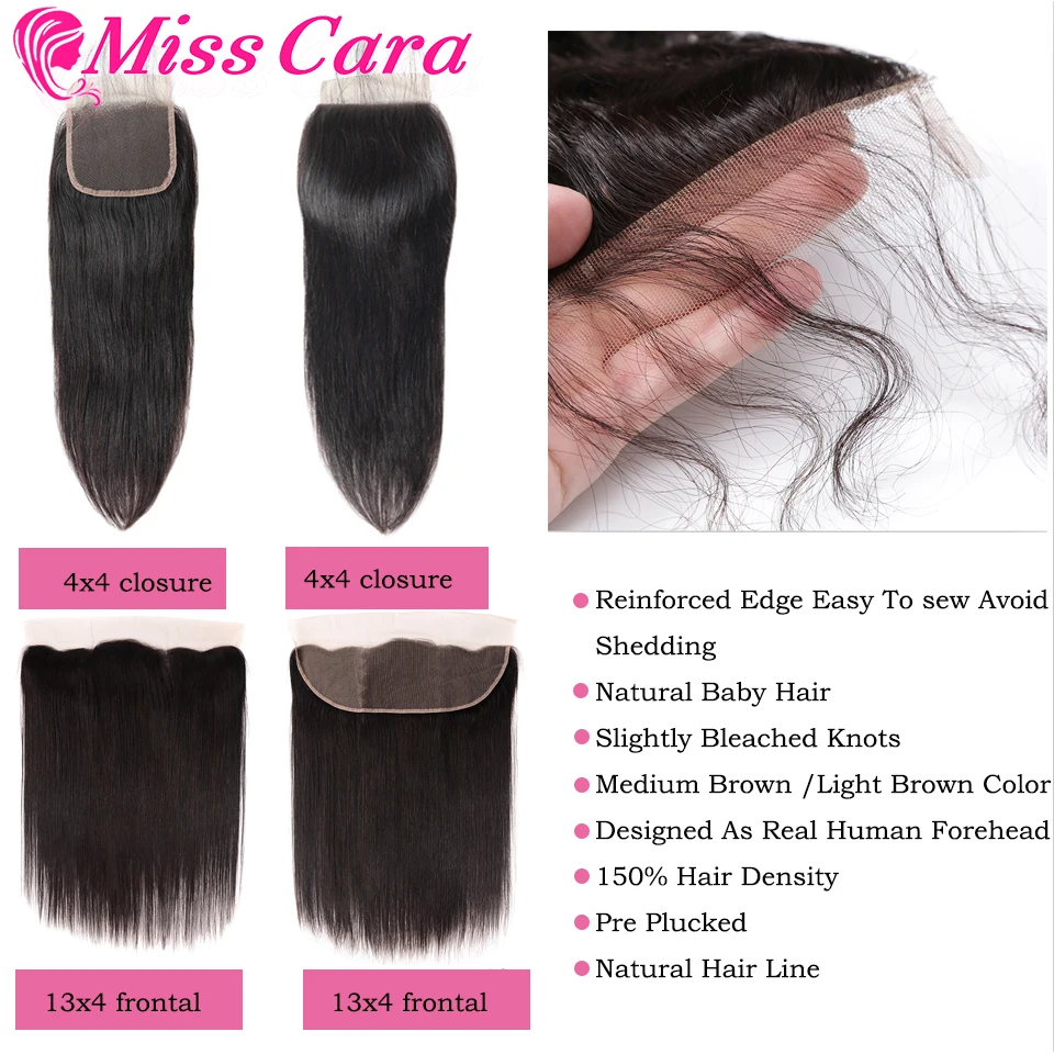 Miss Cara прямые пряди волос с фронтальной Малайзией 100% девственные человеческие волосы для женщин прозрачные кружевные фронтальные пряди