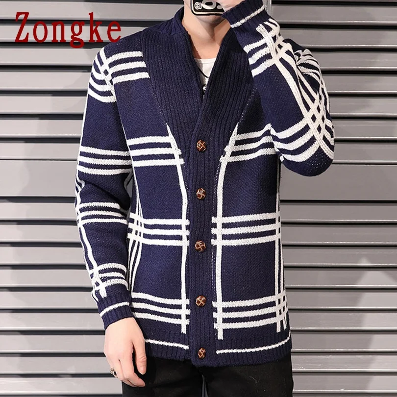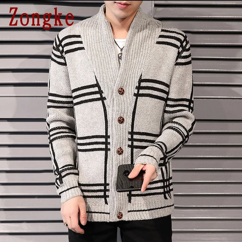 Полосатый кардиган Zongke, Мужская одежда, вязаный свитер, мужской кардиган, мужские свитера, зимняя одежда, кардиганы, модель 2022
