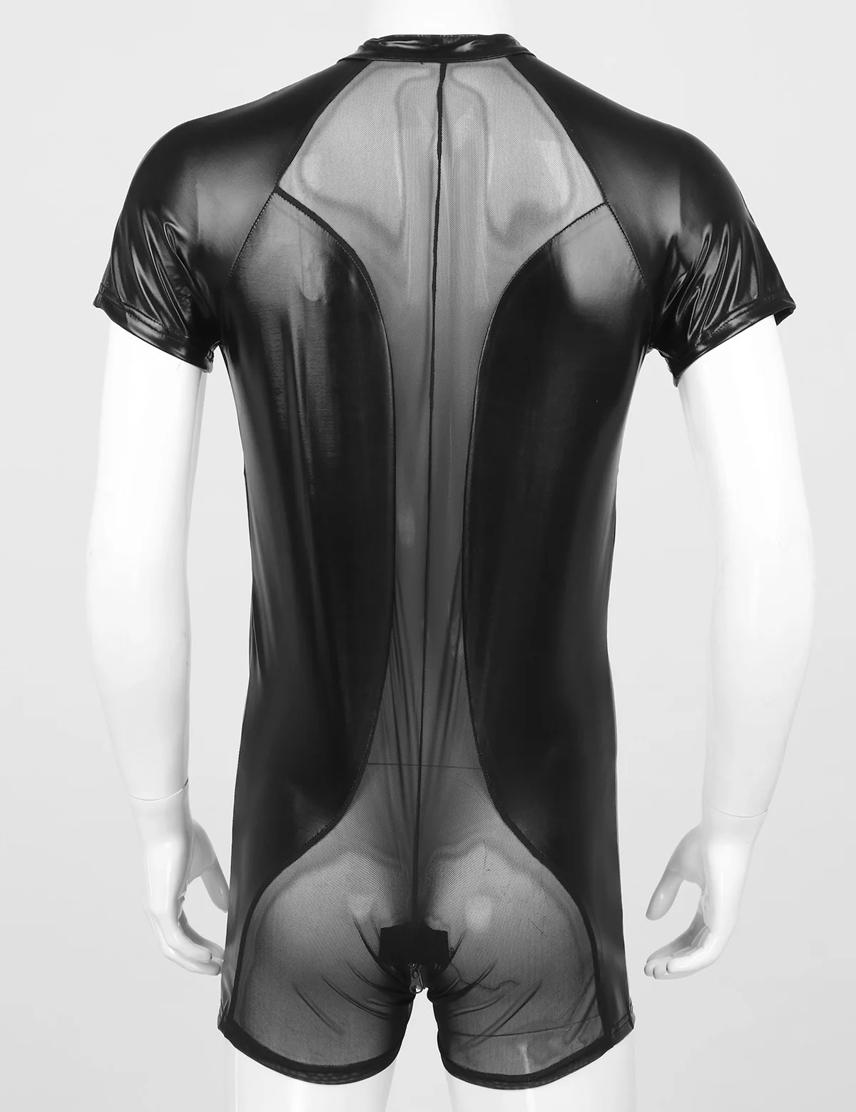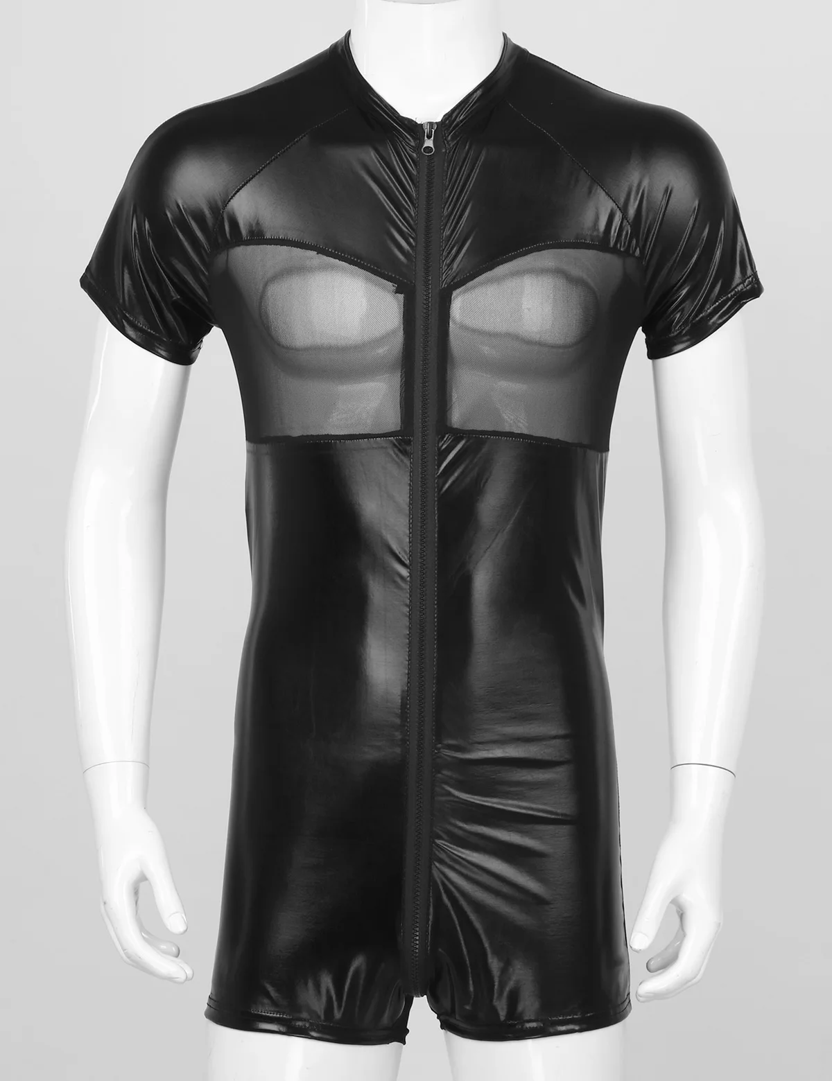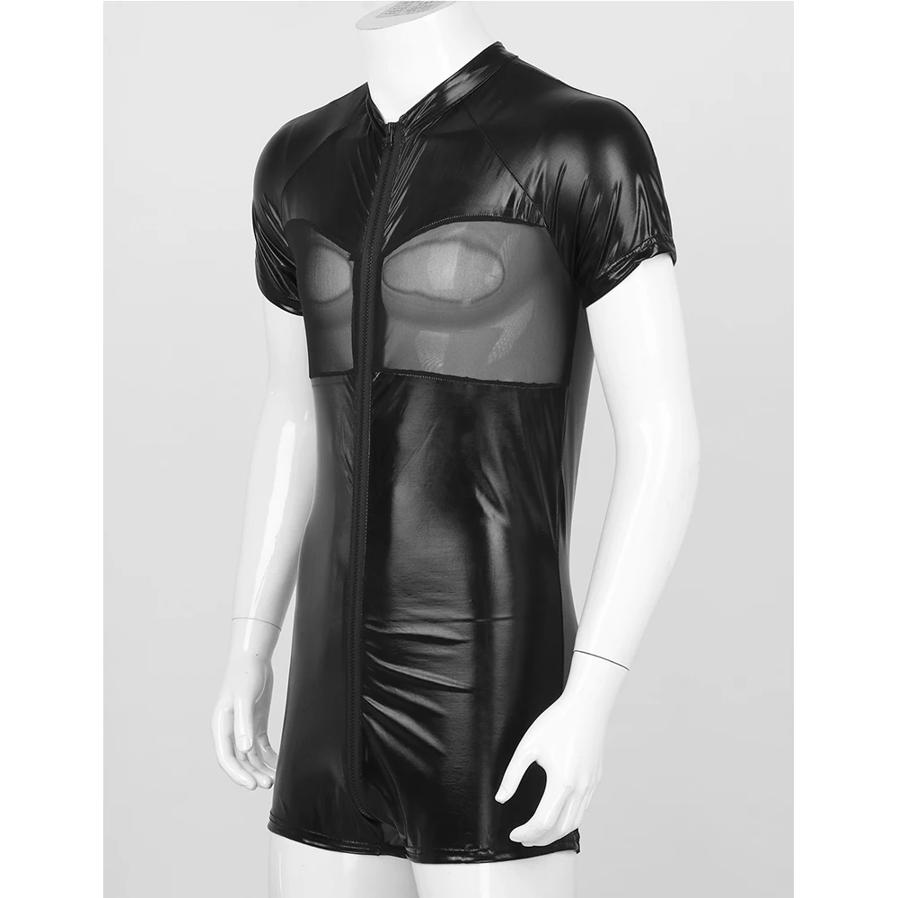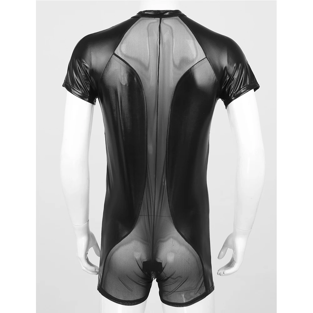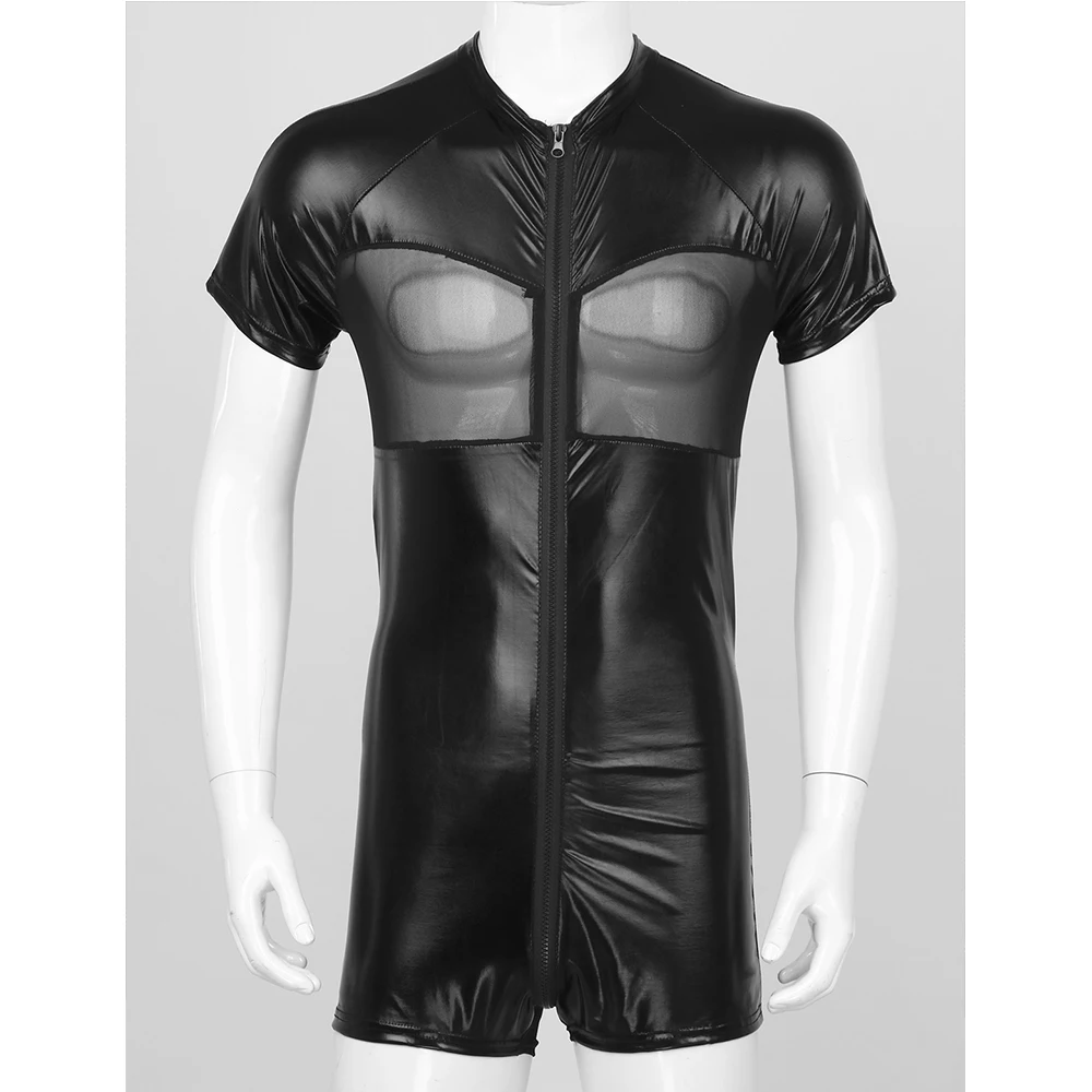 Нижнее белье для мужчин, латексный боди, одежда для танца на шесте, блестящий сетчатый комбинезон в стиле пэчворк, облегающий купальник, короткий комбинезон, клубная одежда