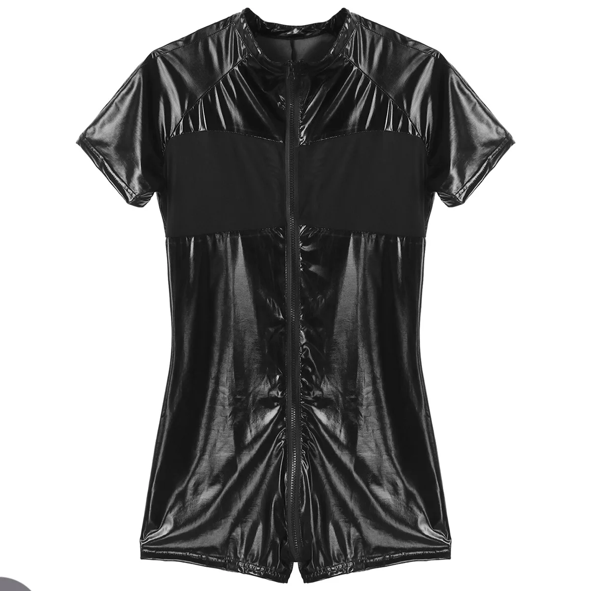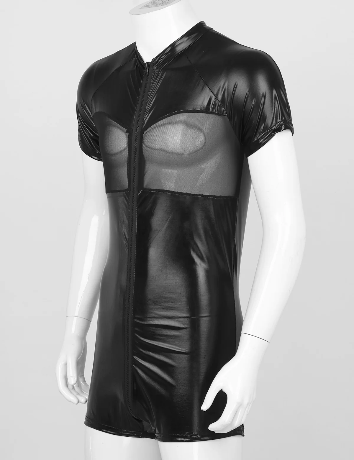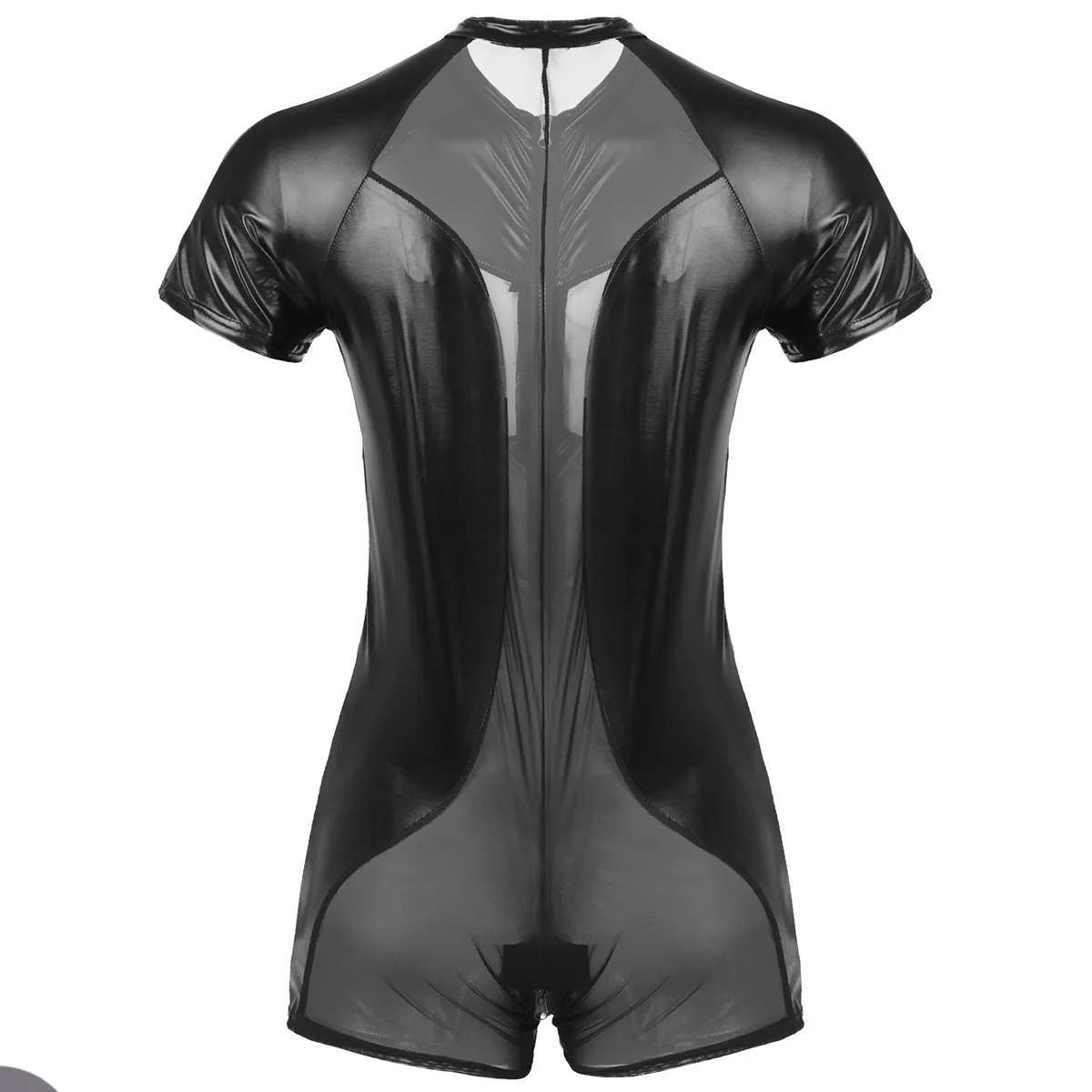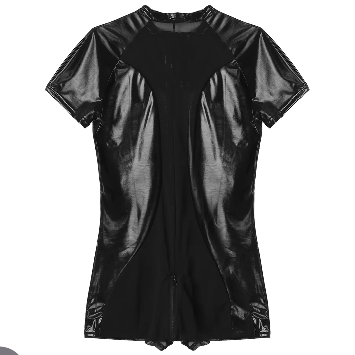Нижнее белье для мужчин, латексный боди, одежда для танца на шесте, блестящий сетчатый комбинезон в стиле пэчворк, облегающий купальник, короткий комбинезон, клубная одежда