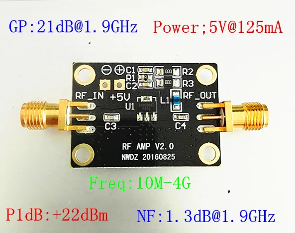 Малошумный LNA 0,05-4G NF = 0,6дб широкополосный усилитель HF FM VH...