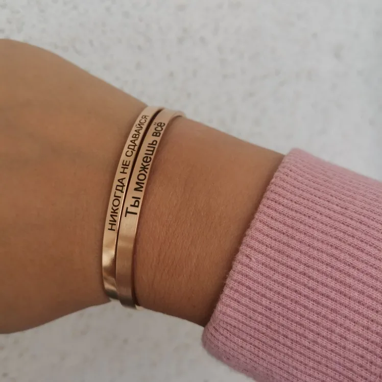Браслет выглядит очень элегантно. Написание на нем-именно то, что я заказал. Большое спасибо!